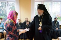 24 сентября 2018 года на Епархиальных Библейско-богословских курсах состоялся очередной выпускной акт, в котором принял участие Высокопреосвященный Стефан, архиепископ Гомельский и Жлобинский. Начало праздничному мероприятию положил благодарственный молебен в храме в честь иконы Божией Матери «Всех скорбящих Радость» г.Гомеля. Во время официальной части торжественного выпускного акта Высокопреосвященный Владыка поздравил выпускников и вручил свидетельства и аттестаты об окончании курсов. Курсанты получили свидетельства с присвоением квалификаций «Преподаватель Воскресной школы» и «Миссионер –катехизатор». |