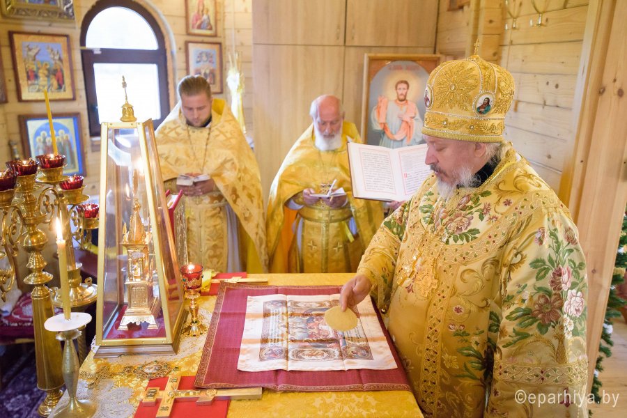 Божественную литургию в день памяти святого благоверного князя Олега Брянского Высокопреосвященный Стефан совершил в одноименном храме г.Добруша. Высокопреосвященному сослужили: духовник Гомельской епархии протоиерей Стефан Гладыщук, настоятель прихода иерей Алексей Рыкалин и духовенство епархии. По окончании богослужения Владыка поздравил причастников с принятием Святых Христовых Таин, обратился к молящимся со словами Архипастырского назидания и в память об этом дне раздал всем иконки. В завершении визита настоятель храма иерей Алексей Рыкалин ознакомил Высокопреосвященного Стефана с ходом строительных работ в приходе. |