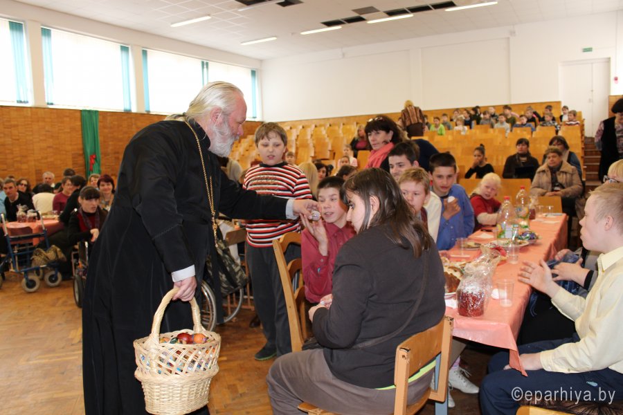 14 апреля 2015г. в ГУО "СШ №50" г.Гомеля состоялся Пасхальный концерт для детей с ограниченными возможностями. Учащиеся школы подготовили для концерта обширную программу, в которую входили вальсирование, песни, сладкий стол для детей с ограниченными возможностями. На концерт был приглашен игумен Мефодий, настоятель храма в честь иконы Божией Матери "Скоропослушница", он выступил с поздравительным словом, после чего угостил всех присутствующих куличами и крашеными яйцами. |