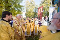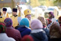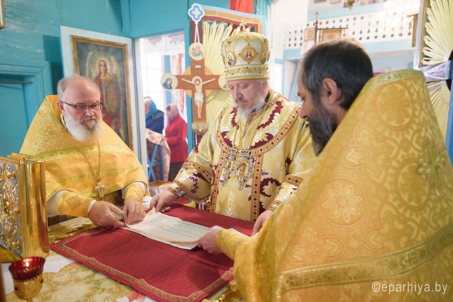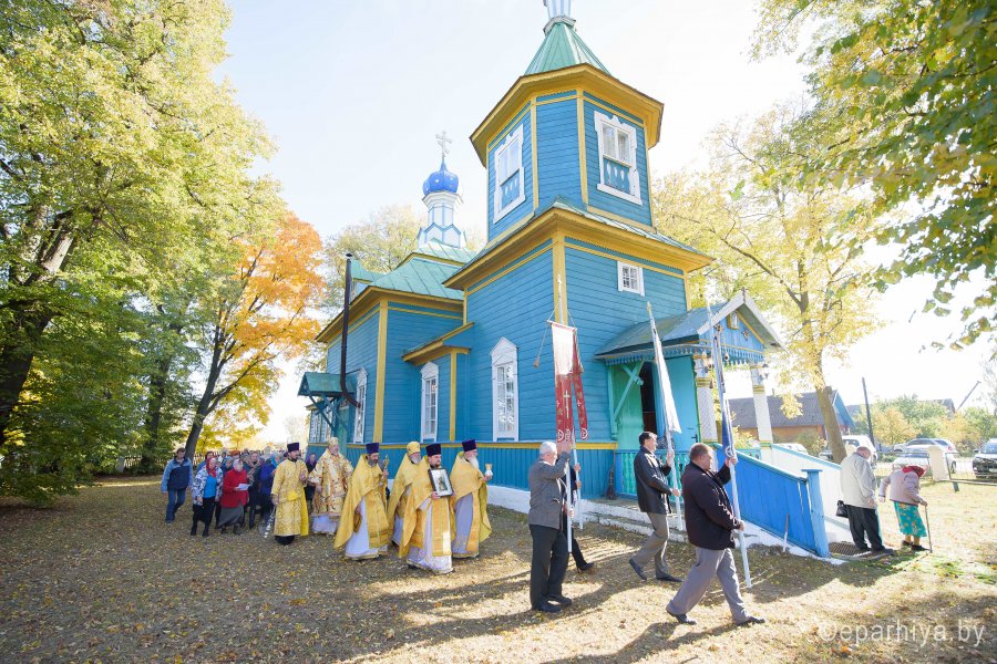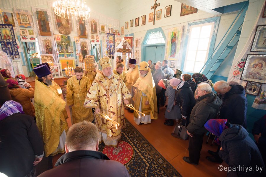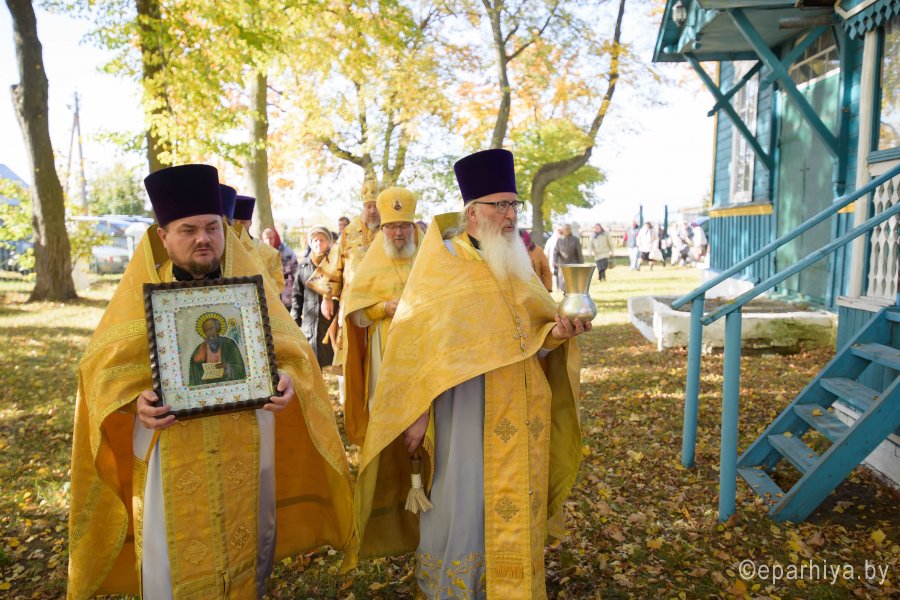 Божественную литургию в день памяти апостола и евангелиста Иоанна Богослова 9 октября 2018г. Высокопреосвященный Стефан совершил в храме апостола Иоанна Богослова д.Ямполь. Высокопреосвященному сослужили: благочинный Речицкого округа протоиерей Сергей Пешко и духовенство округа. По окончании богослужения Владыка возглавил Крестный ход, поздравил причастников с принятием Святых Христовых Таин и обратился к молящимся со словами Архипастырского назидания. |