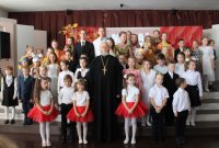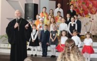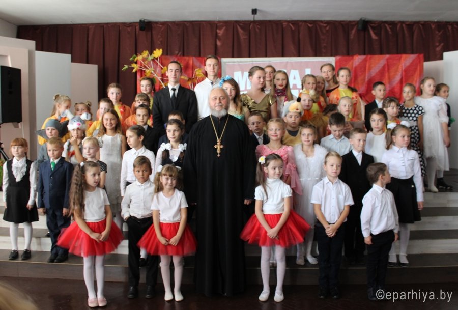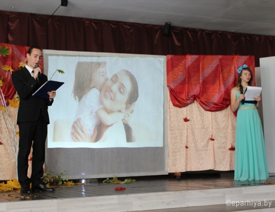 13 октября, в канун праздника Покрова Пресвятой Богородицы, Царицу Небесную прославляли в средней школе №4 г.Рогачёва. Участие в мероприятии принял протоиерей Алексей Смотрицкий, настоятель прихода храма святого благоверного князя Александра Невского в г.Рогачёве. Театральные коллективы школы под руководством Никитиной Натальи Евгеньевны и Контанистовой Татьяны Валерьевны подготовили праздничное представление. Ребята рассказали всем об истории праздника, показали инсценировку о помощи по молитвам Пресвятой Богородице, прославляли Матерь Божию в стихах, песнях и танцах. И, конечно, не обошли вниманием своих мамочек, ведь в нашей стране не случайно День Матери отмечается в праздник Покрова Пресвятой Богородицы. Трогательная притча о маме напомнила всем, что Господь, даруя матери дитя, надеется, что она будет не только заботиться о ребёнке, но и воспитает его в любви и вере. Это подчеркнул в поздравлении мамам почётный гость праздничного мероприятия протоиерей Алексей Смотрицкий: "Как любящая мама заботится о своём ребёнке, так Пресвятая Богородица заботится о каждом человеке на этой земле. Она учит нас любви бескорыстной, которая всё прощает, всё терпит. Мы, взрослые, научаясь ей, должны постараться передать опыт такой любви своим детям". |