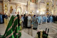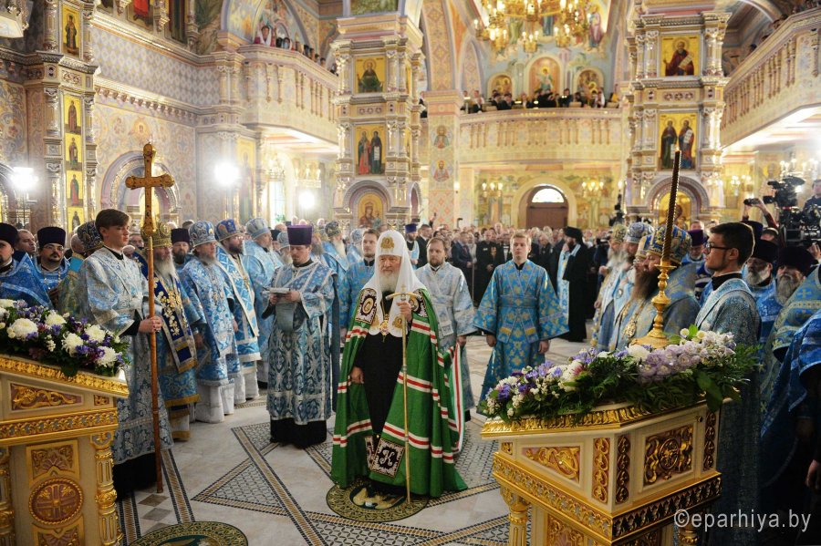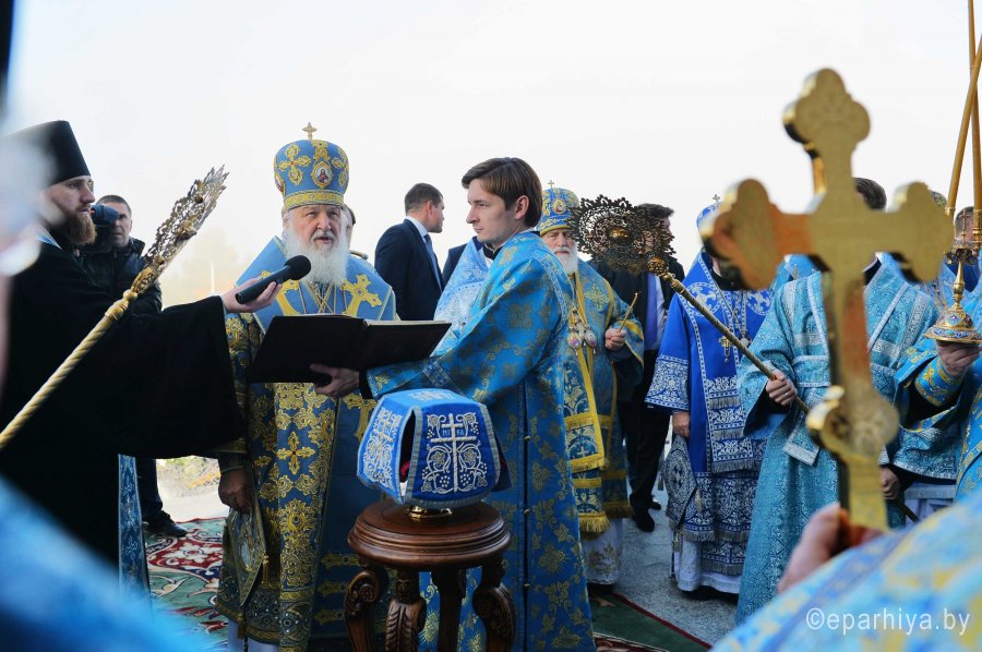 В праздник Покрова Пресвятой Богородицы Святейший Патриарх Кирилл совершил чин великого освящения храма-памятника в честь Всех святых в Минске