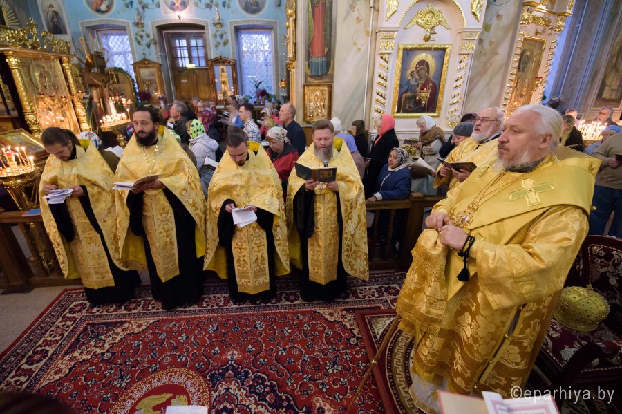 Вечернее богослужение с чтением акафиста нараспев Высокопреосвященнейший Стефан архиепископ Гомельский и Жлобинский совершил 22 октября 2018г. в соборе святых апостолов Петра и Павла г. Гомеля в сослужении духовенства собора. Со словами проповеди к молящимся обратился клирик храма храма святых благоверных князей Петра и Февронии Муромских г.Гомеля иерей Вадим Капшук. По окончании богослужения Владыка обратился к присутствующим со словами Архипастырского назидания. |