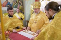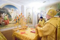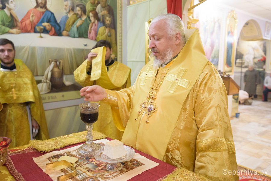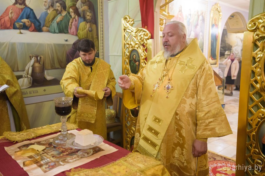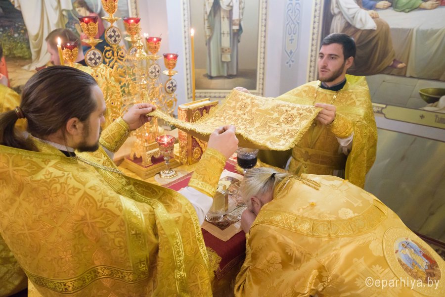 Божественную литургию в понедельник 22-й седмицы по Пятидесятнице 22 октября 2018г. Высокопреосвященный Стефан в сослужении духовенства собора совершил в криптовом храме Свято-Петро-Павловского кафедрального собора г.Гомеля. По окончании богослужения Владыка поздравил причастников с принятием Святых Христовых Таин и обратился к молящимся со словами Архипастырского назидания. |