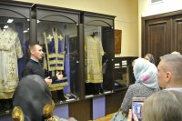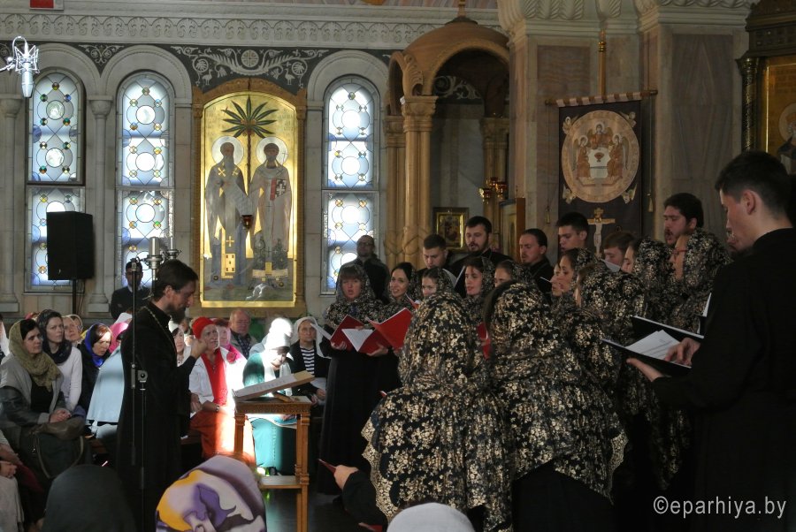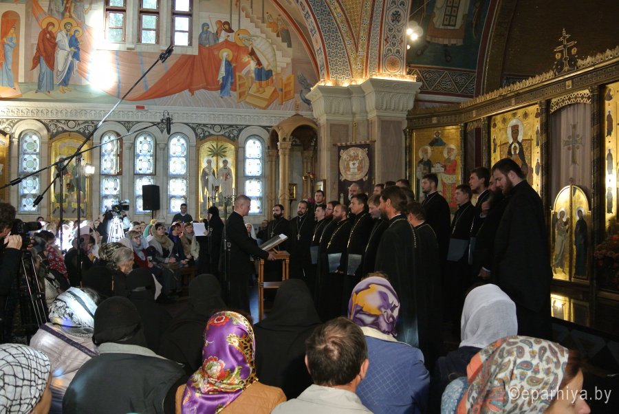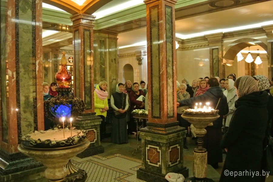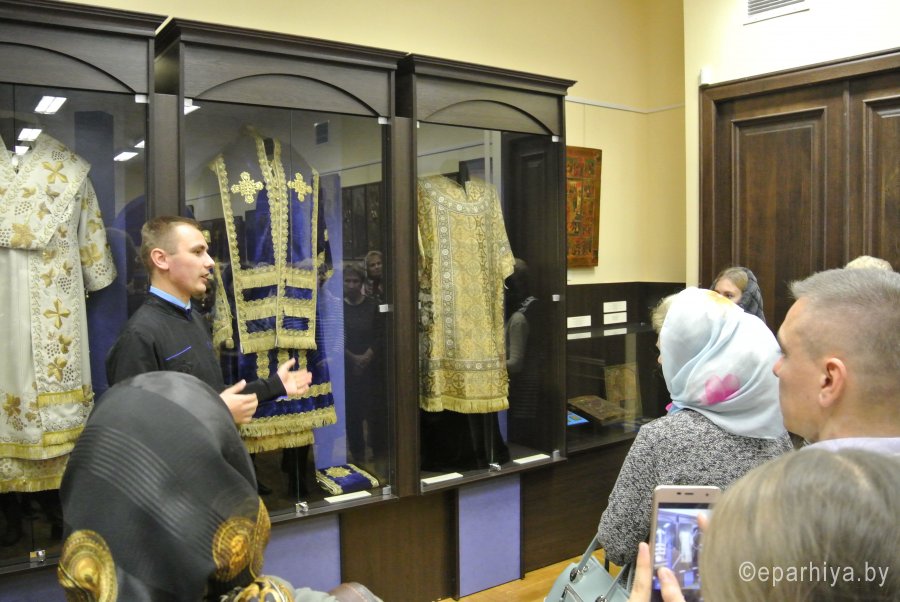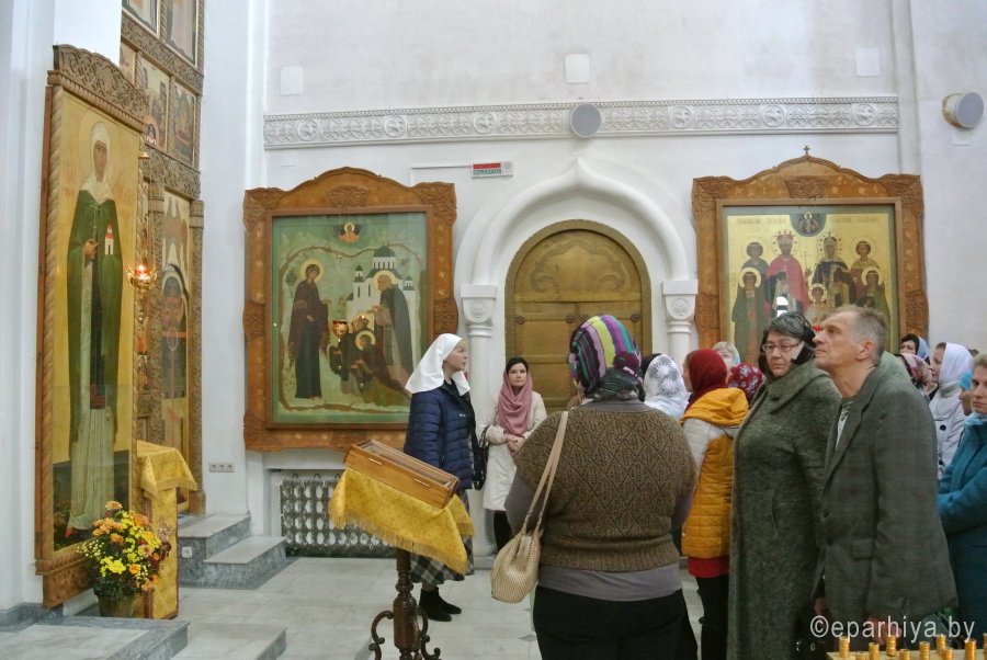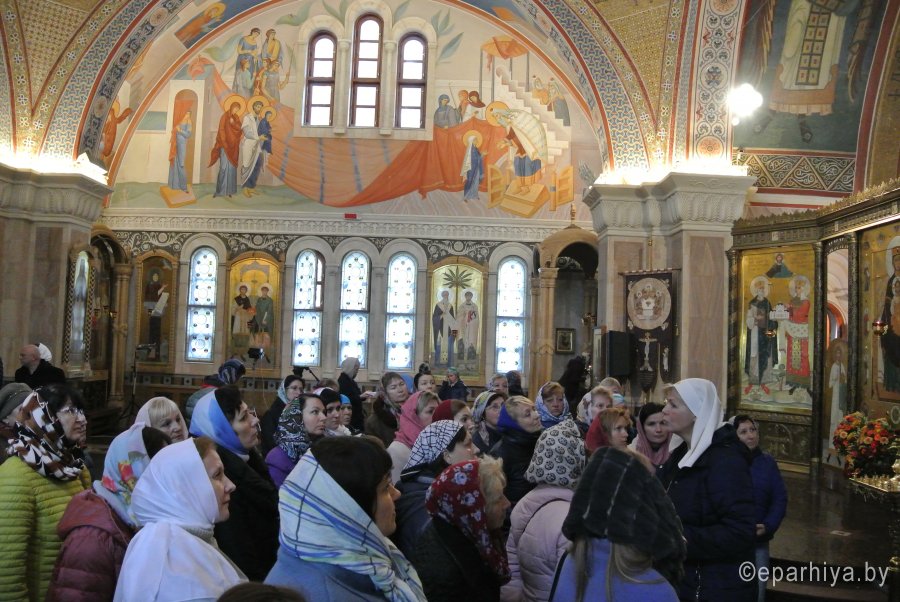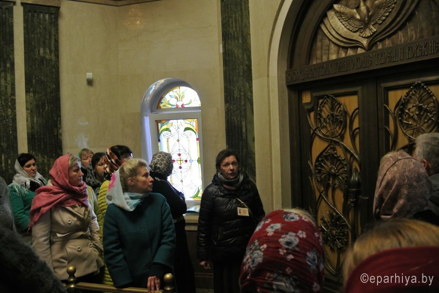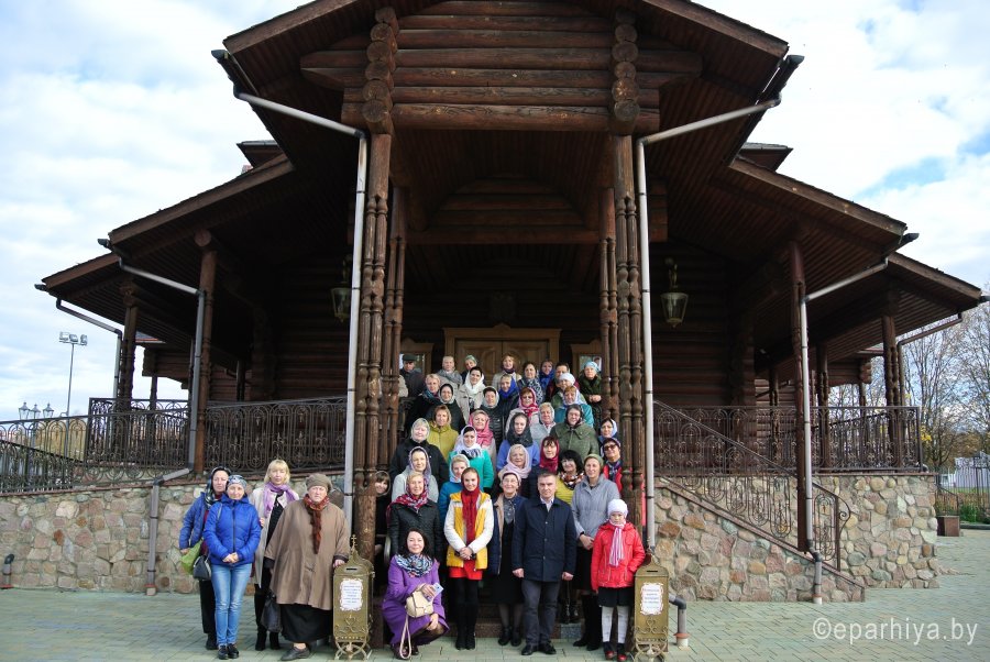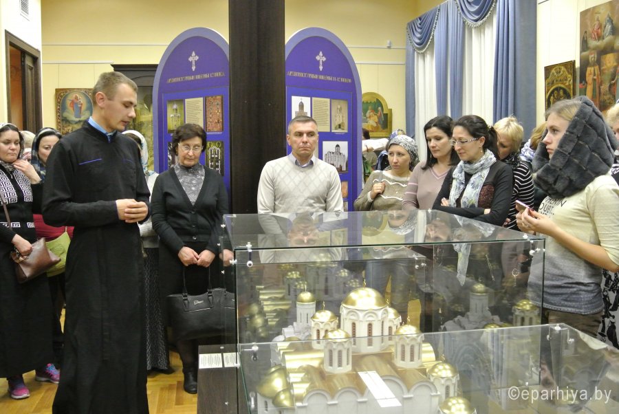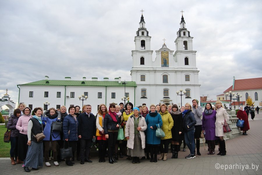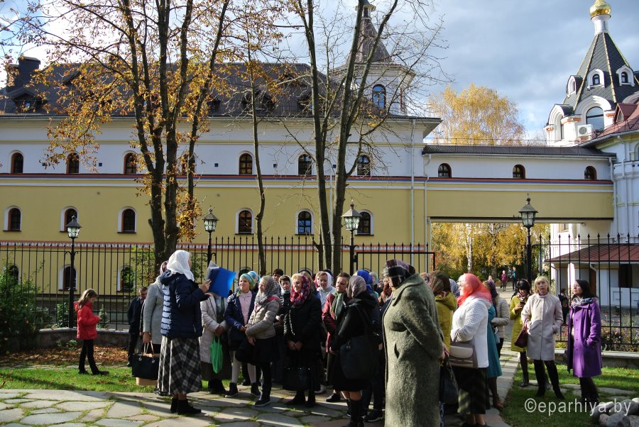 В рамках предстоящих IV областных и XV городских Покровских образовательных чтений 2018 года, открытие которых в Гомельской области состоится 30 и 31 октября, Гомельская епархия, совместно с управлением образования Гомельского горисполкома, организовала двухдневную культурологическую экскурсию для 50 руководителей и представителей администрации учреждений образования г.Гомеля в Минский Свято-Елисаветинский монастырь. В первый день пребывания в монастыре педагоги посетили Покровский международный фестиваль церковных песнопений «Державный глас», который ежегодно проводиться в первую субботу после праздника Покрова Пресвятой Богородицы под сводами храма в честь иконы Пресвятой Богородицы «Державная». Организатор фестиваля — старший регент монахиня Иулиания (Денисова). Впервые он был проведен в 2010 году по благословению митрополита Филарета и с тех пор сохраняет свой уникальный формат: пять хоров выступают в храме монастыря перед прихожанами и гостями. Хоры могут быть церковные и светские, детские и студенческие, мужские, женские и смешанные, профессиональные и любительские. В программе хоров — православные песнопения и песни, произведения различных композиторов и народные песни, созвучные Православию. В этом году в праздничной программе приняли участие хор Феодоровского собора (Санкт-Петербург), Белорусский византийский хор «Артос» (Минск, храм Воскресения Христова), Сводный хор Харьковской духовной семинарии, хор духовенства Гродненской епархии, Праздничный хор Свято-Елисаветинского монастыря. После обзорной экскурсии по монастырю, состоялось посещение Церковно-исторического музея Белорусской Православной Церкви, который с 2015 года действует на базе первого учебного корпуса и ректората Духовно-образовательного центра при Минской духовной академии. Решение о создании музея было принято на заседании Синода Белорусской Православной Церкви 28 марта 2013 года. Музейные фонды формировались на основе коллекции церковных древностей, собранной митрополитом Минским и Слуцким Филаретом, почетным Патриаршим Экзархом всея Беларуси. Разработка концепции музея проводилась при содействии кафедры истории и теории христианского искусства факультета церковных художеств Православного Свято-Тихоновского гуманитарного университета и кафедры церковных искусств и археологии Общецерковной аспирантуры и докторантуры имени святых Равноапостольных Кирилла и Мефодия. Музейное собрание, представленное в трех залах, рассказывает об истории Православной Церкви на землях Беларуси. После посещения музея все участники группы направились в расположенный совсем рядом, буквально в нескольких метрах, Свято-Духов кафедральный собор, где смогли помолиться перед чудотворной Минской иконой Божией Матери и приложиться к мощам святой Софии Слуцкой. На второй день пребывания в монастыре все желающие смогли поучаствовать в воскресной Божественной Литургии, во время которой на клиросе звучали два хора: Харьковской духовной семинарии и Праздничный хор Свято-Елисаветинского монастыря. Завершением поездки стало посещение крипты и верхнего храма-памятника в честь Всех Святых и в память о жертвах, спасению Отечества нашего послужившего, освящение которого состоялось 14 октября 2018 года патриархом Московским и всея Руси Кириллом. На памят