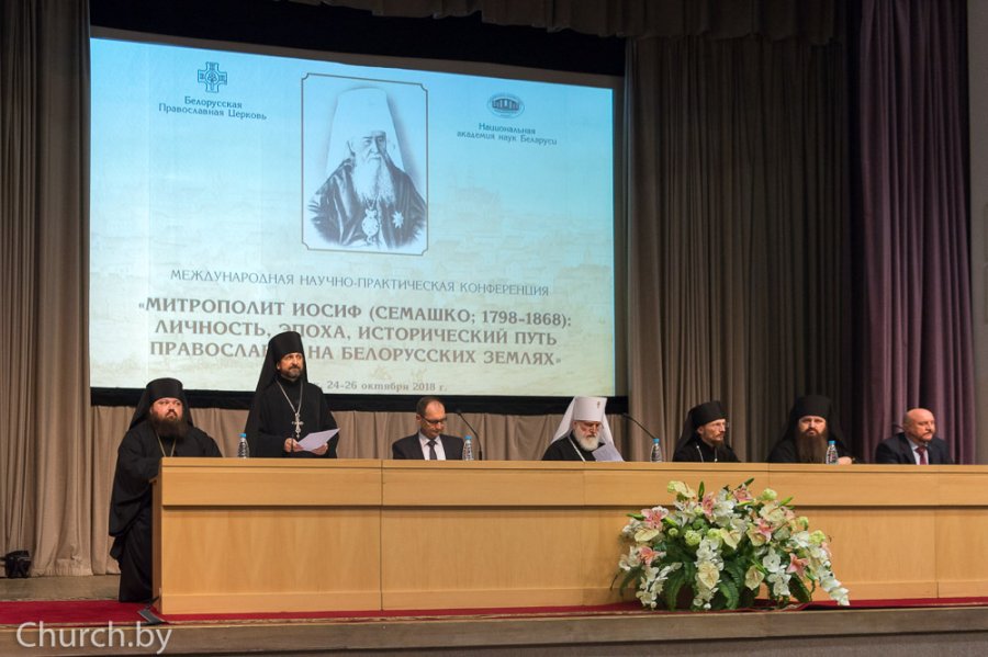 Председатель Комиссии по канонизации святых Белорусской Православной Церкви архимандрит Амвросий (Шевцов) 24 октября 2018 года принял участие в торжественном открытии и пленарном заседании международной научно-практической конференции «Митрополит Иосиф (Семашко; 1798 — 1868): личность, эпоха, исторический путь Православия на белорусских землях», которое состоялось в конференц-зале Национальной библиотеки Беларуси. Научный форум приурочен к 220-летию со дня рождения и 150-летию со дня блаженной кончины митрополита Литовского и Виленского Иосифа (Семашко), инициатора воссоединения белорусских униатов с Православной Церковью. Организаторами конференции выступили: Белорусская Православная Церковь, Национальная академия наук Беларуси, Отделение гуманитарных наук и искусств НАН Беларуси, Институт философии НАН Беларуси, Минская духовная академия. В состав президиума конференции вошли: митрополит Минский и Заславский Павел, Патриарший Экзарх всея Беларуси; Александр Евгеньевич Гучок, председатель Высшей аттестационной комиссии Республики Беларусь; Анатолий Аркадьевич Лазаревич, директор Института философии Национальной академии наук Беларуси; епископ Борисовский и Марьиногорский Вениамин; епископ Слуцкий и Солигорский Антоний; архимандрит Сергий (Акимов), ректор Минской духовной академии; архимандрит Амвросий (Шевцов), председатель Комиссии по канонизации святых Белорусской Православной Церкви. Работа конференции началась совместным пением молитвы «Царю Небесный», после чего архимандрит Сергий (Акимов) озвучил повестку дня. С приветственным словом ко всем собравшимся обратился митрополит Павел. Владыка Экзарх, в частности, подчеркнул, что деяние, которое совершил митрополит Иосиф (Семашко) и его ближайшие сподвижники, — это поистине эпохальное событие, которое определило и создало фундамент церковно-государственного устройства нынешней Республики Беларусь. — Миссионерские труды святителя Иосифа, дерзаю так его именовать, продолжают приносить плоды и сегодня, сохраняя свою актуальность не только в Белой Руси, но и далеко за ее пределами. Именно в наше время, когда единству православного мира и единству восточных славян брошен серьезный вызов, нам надлежит глубоко и вдумчиво осмыслить служение Виленского архипастыря, изучить мотивы его деяний и постараться понять суть его подвига, — сказал Патриарший Экзарх. Митрополит Павел особо отметил, что трудами владыки Иосифа и его сподвижников более полутора миллионов белорусских униатов вернулись в Православную Церковь. Благодаря усилиям Виленского архипастыря белорусы вспомнили о своих древних корнях и о своем духовном происхождении из Днепровской крещальной купели святого князя Владимира. Деятельность владыки Иосифа прекратила многолетнюю вражду и ненависть на религиозной основе, открыла путь к мирной жизни, возрождению белорусского языка и белорусской самобытной культуры. Патриарший Экзарх также напомнил, что в память о проведении Полоцкого Собора, инициатором которого был митрополит Иосиф (Семашко), была отчеканена медаль с надписью: «Отторгнутые насилием (1596) воссоединены любовью (1839)». Эти слова совершенно по-особому воспринимаются сейчас, когда в братской Украине, на родине митрополита Иосифа (Семашко), разворачивается кризис, связанный с вопиющим вме