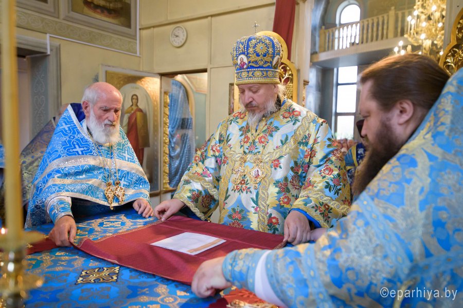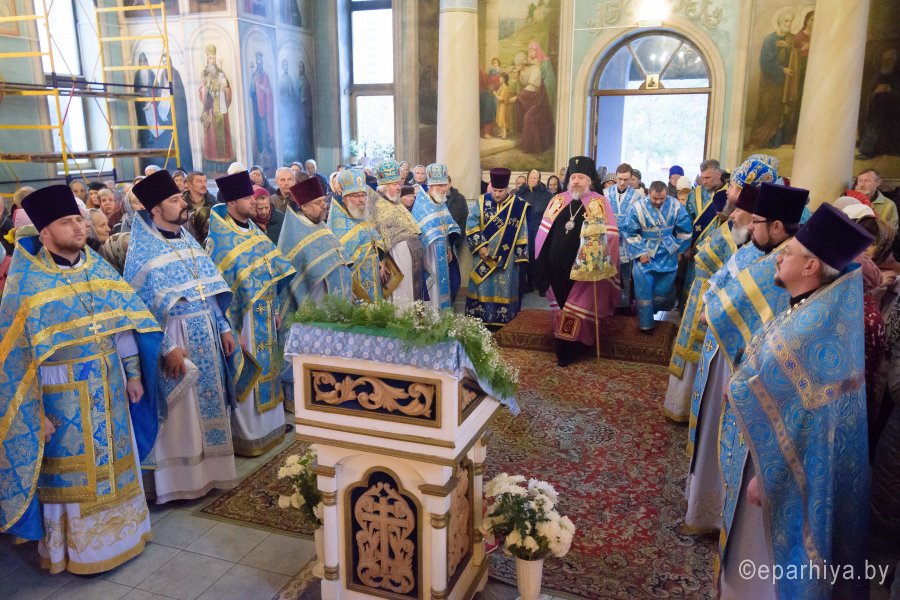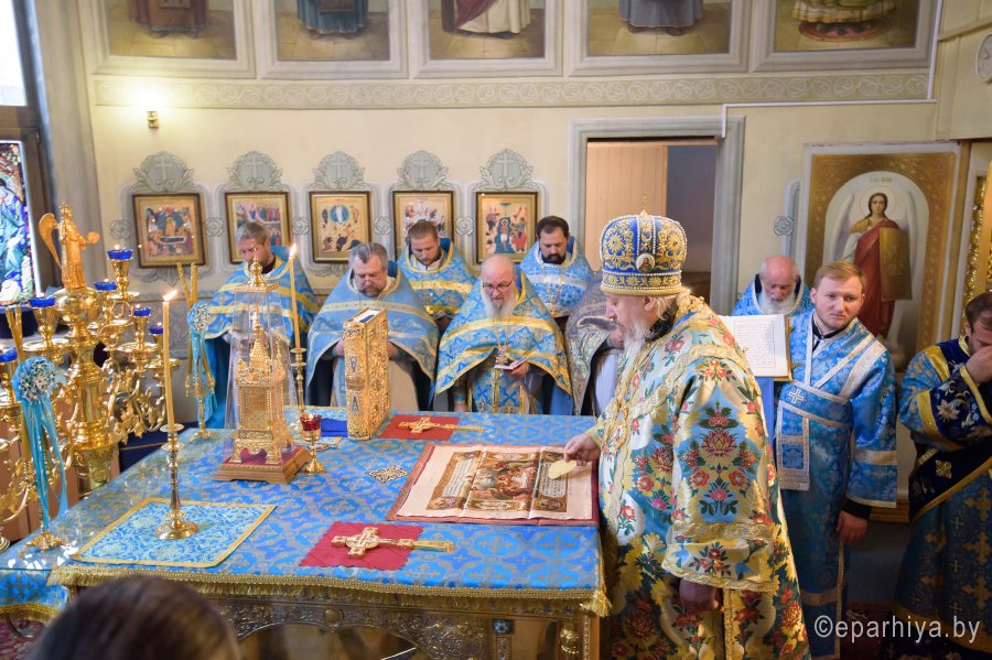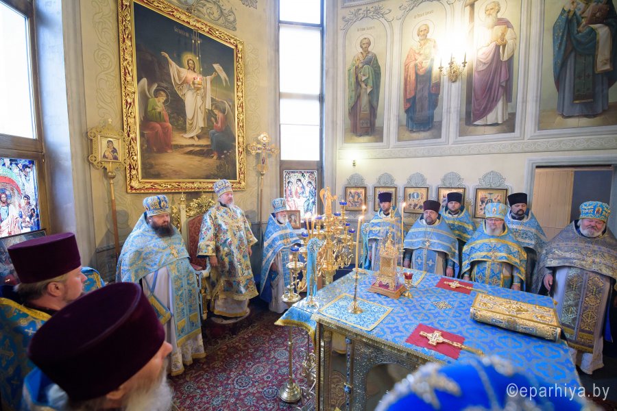 Божественную литургию в праздник иконы Божией Матери "Иверская" Высокопреосвященный Стефан совершил 26 октября 2018г. в одноименном храме г.Гомеля. Высокопреосвященному сослужили: секретарь Гомельской епархии протоиерей Георгий Алампиев, благочинный монастырей Гомельской епархии архимандрит Амвросий (Шевцов), Духовник Гомельской епархии протоиерей Стефан Гладыщук, благочинный Речицкого округа протоиерей Алексей Пешко, настоятель прихода протоиерей Георгий Тур, эконом Гомельской епархии протоиерей Владимир Масалитин, благочинный Гомельского районного округа протоиерей Артемий Кривицкий, благочинный Гомельского городского округа протоиерей Игорь Ольшанов и духовенство епархии. По окончании богослужения Владыка поздравил причастников с принятием Святых Христовых Таин и обратился к молящимся со словами Архипастырского назидания. |