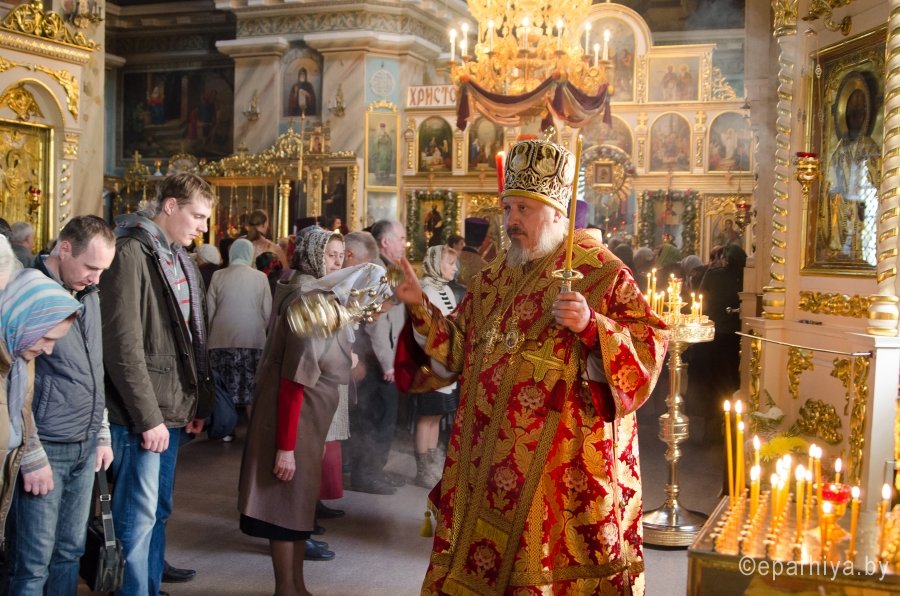 25 апреля 2015г., в канун Недели свв. жен-мироносиц, Преосвященнейший Стефан возглавил всенощное бдение в Свято-Петро-Павловском кафедральном соборе г.Гомеля. Преосвященнейшему сослужили: секретарь Гомельской епархии протоиерей Георгий Алампиев и духовенство собора. |