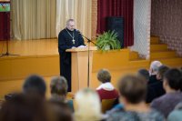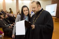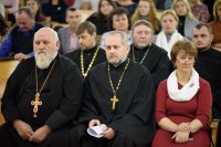 1 ноября 2018г. в государственном учреждении образования «Средняя школа №12 г. Жлобина» состоялись IV районные Покровские образовательные чтения. В этом году была затронута важная тема – «Молодёжь: свобода и ответственность». Осознавая ответственность за воспитание молодежи, представители учреждений образования, органов власти, общественных организаций, а также духовенство Жлобинского благочиния объединили свои усилия в решении этой задачи. Как отметили ведущие семинара иерей Павел Кулиш, клирик храма Святой Живоначальной Троицы в г. Жлобине и регент Мария Шебеко, в течение многих лет у Гомельской епархии, Жлобинского благочиния, а также отдела образования, спорта и туризма Жлобинского райисполокма есть предмет общей заботы – нравственное воспитание детей, подростков. Без сомнения, тесный союз православной церкви и школы – это тот путь, который будет содействовать становлению правильного мировоззрения молодежи. Открывали Покровские чтения Марина Анатольевна Романенко, главный специалист отдела идеологической работы, культуры и по делам молодежи Жлобинского райисполкома, Ольга Олеговна Чередниченко, главный специалист отдела образования, спорта и туризма Жлобинского райисполкома, протоиерей Артемий Кривицкий, председатель отдела религиозного образования и катехизации Гомельской епархии, протоиерей Василий Пилипенко, благочинный Жлобинского округа, настоятель прихода храма Святой Живоначальной Троицы в г. Жлобине. Протоиерей Артемий Кривицкий, председатель отдела РОиК Гомельской епархии, задал тон в работе Покровских чтений, выступив с докладом «Духовно-нравственные аспекты понятий свободы выбора и ответственности». Протоиерей Леонид Михайловский, настоятель храма святого преподобного Серафима Саровского в г. Жлобине, ответственный за работу молодежного отдела Жлобинского благочиния, раскрыл перед присутствующими тему "Церковь и молодежь". Вопрос о воспитании молодёжи в духе живой Православной веры очень важен. Ведь это будущее нашей Церкви. Важно понять, что церковная жизнь насыщена понятием «синергии», т.е. соработничества. С одной стороны, Бог призывает человека к спасению, с другой стороны – сам человек, услышав этот призыв, направляется в сторону вечной жизни. Таким образом, идёт процесс возрождения души человека. Церковь в этом процессе должна осуществлять духовное руководство. Главное - идти навстречу молодому поколению в этой работе, так как они будущее нашей Церкви и нашего государства. С докладом «Молодёжь и свобода выбора: предпочтения, приоритеты, ценности» перед присутствующими гостями семинара выступила учитель истории и обществоведения государственного учреждения образования «Средняя школа № 12 г. Жлобина» Ирина Ивановна Алексеенко. Церковь является одним из важнейших социальных институтов, чей исторический опыт, духовный потенциал и многовековое культурное наследие оказали в прошлом и оказывают в настоящем существенное влияние на формирование духовных, культурных и национальных традиций народа, поэтому нравственная сила христианского учения сегодня должна более активно использоваться в целях формирования нравственного и духовного мира подрастающего поколения, а воспитание учеников должно происходить на основе христианского мировоззрения. В первой секции семинара прото