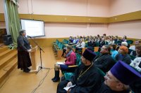 2 ноября 2018 года в г. Добруше на базе ГУО «Гимназия г. Добруша» состоялись IV районные Покровские образовательные чтения на тему: «Молодёжь: свобода и ответственность». В форуме приняли участие духовенство и сотрудники епархии, представители ООСиТ района, заместители директоров по воспитательной работе учреждений общего среднего образования района и педагоги ГУО, представители советов старшеклассников, лидеры молодёжных организаций. На пленарном заседании предметом размышлений стала задача воспитания у современной молодежи понимания, что свобода на существует без нравственной ответственности. Выступающие от района Журбенкова Е.Н., заместитель начальника отдела образования, спорта и туризма, Цугаева Е.М., заместитель директора ГУО «Гимназия г. Добруша», иерей Максим Плисков в единомыслии отмечали необходимость соработничества духовенства, педагогов и родителей в решении этой насущной задачи. Протоиерей Артемий Кривицкий, председатель отдела религиозного образования и катехизации, обозначил средства ее решения — это любовь и молитва. Жгирова Н.С., координатор по связям с общественностью Гомельской епархии, отметила, что педагог, воспитатель в широком смысле, — это образ для молодежи: «Воспитательный момент урока присутствует всегда. Мы пришли к детям, — и наш образ считан. И очень хотелось бы, чтобы он был на высоте. Поэтому начинать нужно с воспитания самих воспитателей. А для этого необходимо соработничество педагогов с Церковью с целью постижения духовных законов, которые в этом могут нам помочь». По окончании пленарного заседания все собравшиеся распределились по группам, чтобы принять участие в работе секций. На секциях обсуждались вопросы социальной незащищенности молодого поколения, влияния медиапространства на подсознание молодых людей и понимание ими свободы и ответственности, предлагались пути решения проблемы. |