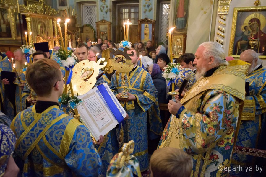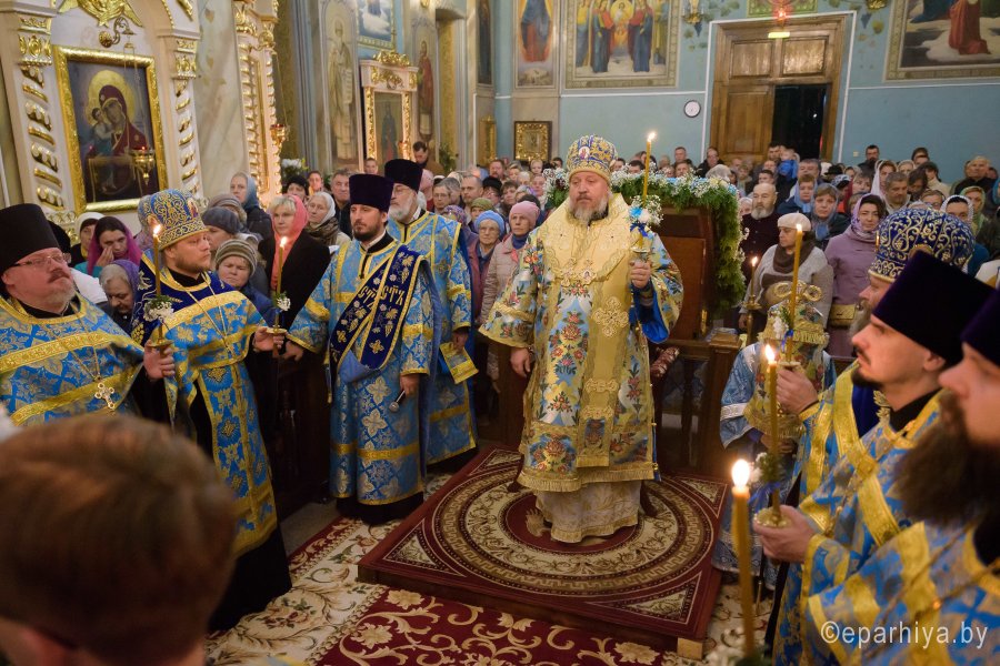 Всенощное бдение в канун праздника иконы Божией Матери "Казанская" 3 ноября 2018г. Высокопреосвященный Стефан совершил в Свято-Петро-Павловском кафедральном соборе г.Гомеля. Высокопреосвященному сослужили: секретарь Гомельской епархии протоиерей Георгий Алампиев и духовенство собора. По окончании богослужения Владыка обратился к молящимся со словами Архипастырского назидания. |