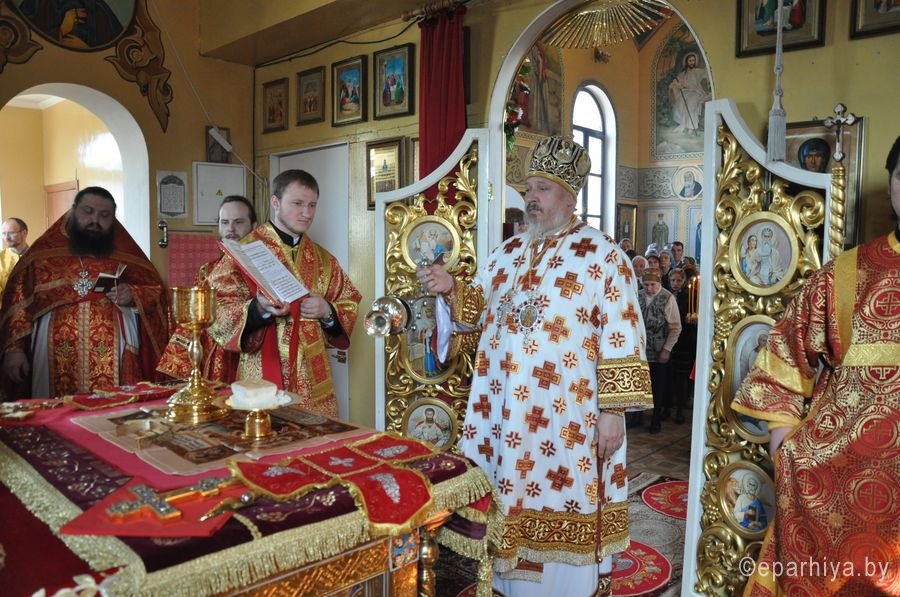 26 апреля 2015г, в Неделю жен-мироносиц, Преосвященнейший Стефан возглавил праздничную Божественную литургию в храме Преображения Господня г.Гомеля. Преосвященнейшему сослужили: секретарь Гомельской епархии протоиерей Георгий Алампиев, наместник Свято-Никольского мужского монастыря архимандрит Амвросий (Шевцов) и духовенство храма. За богослужением состоялось молитвенное поминовение жертв аварии на Чернобыльской АЭС. По окончании Литургии Владыка обратился ко всем молящимся со словами поздравления. |
