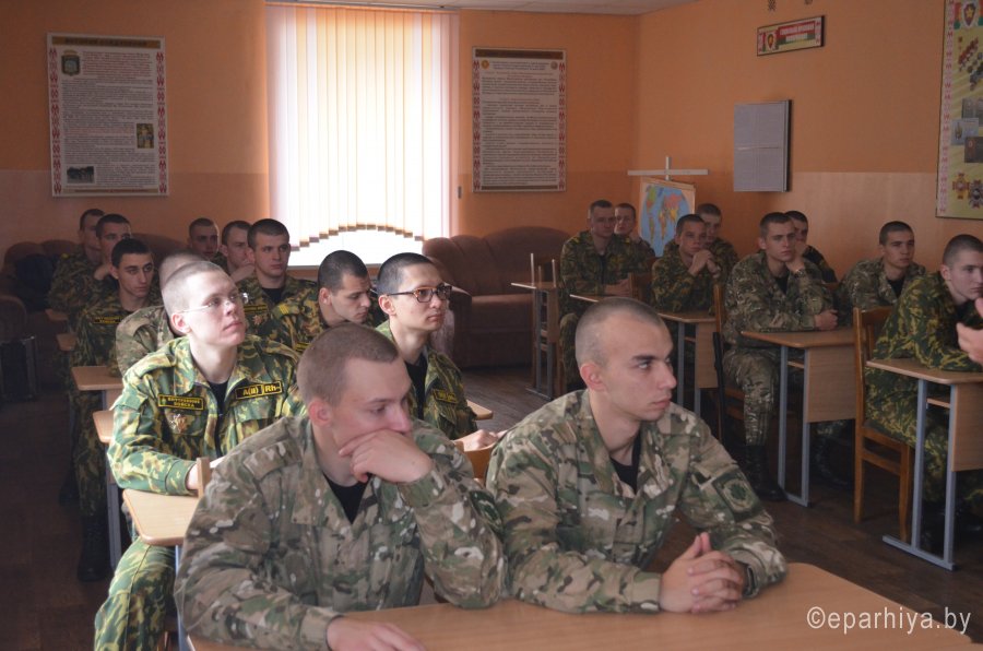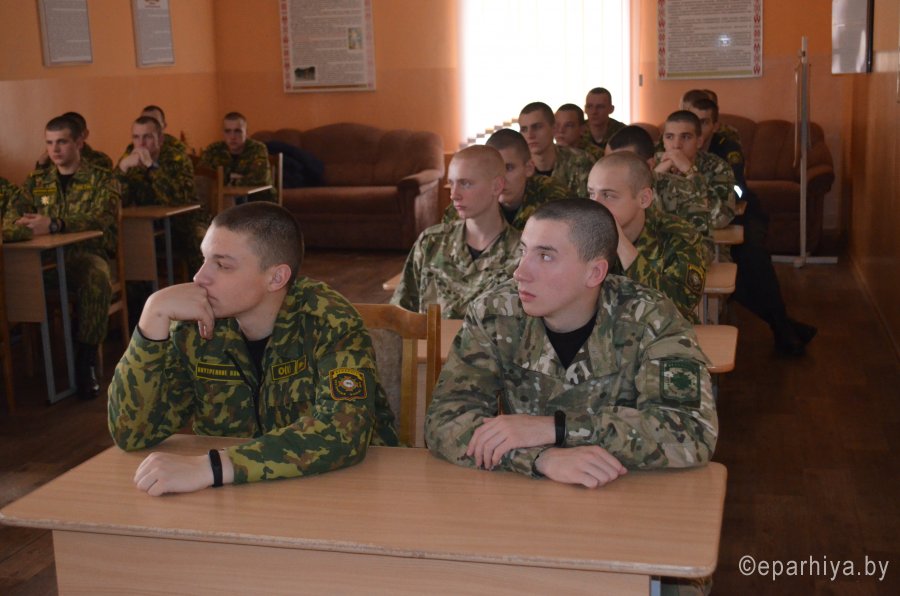 Традиционная встреча священника с военнослужащими 5-ой отдельной патрульной роты в/ч 5525 города Светлогорска состоялась 5 ноября. Благочинный Светлогорского округа протоиерей Александр Кисель обратился с напутственным словом к солдатам части, увольняющимся в запас. Священнослужитель отметил, что в настоящее время каждый солдат несет ответственность перед Родиной, командирами и товарищами. Выполнив свой воинский долг, мужчина продолжает нести ответственность за свою семью, за то, в каком духе будут рождены его дети и какое будущее им будет обеспечено главой семьи. В завершение встречи священник пожелал военнослужащим мужества, терпения и не терять веры в Бога в любых жизненных ситуациях. |