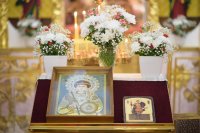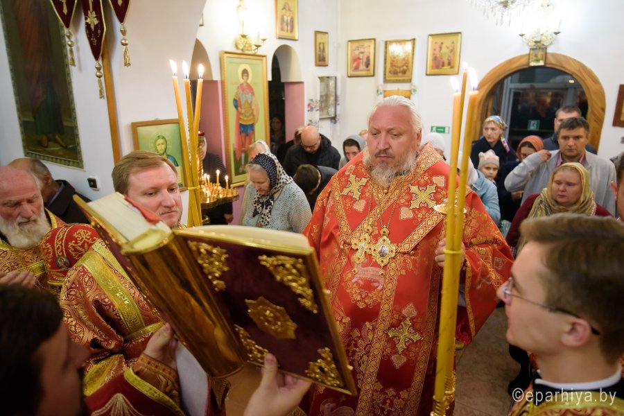 Всенощное бдение в канун дня памяти великомученика Димитрия Солунского 7 ноября 2018 года Высокопреосвященный Стефан совершил в храме святого великомученика Георгия Победоносца г.Гомеля. Высокопреосвященному сослужили: секретарь Гомельской епархии протоиерей Георгий Алампиев, духовник Гомельской епархии протоиерей Стефан Гладыщук, благочинный Гомельского городского округа протоиерей Игорь Ольшанов, настоятель прихода протоиерей Дмитрий Гончаров и духовенство храма. По окончании богослужения Владыка поздравил с Днем Ангела настоятеля храма св. вмч. Георгия Победоносца Дмитрия Гончаров и обратился к молящимся со словами Архипастырского назидания и в память об этом дне раздал всем иконки. |