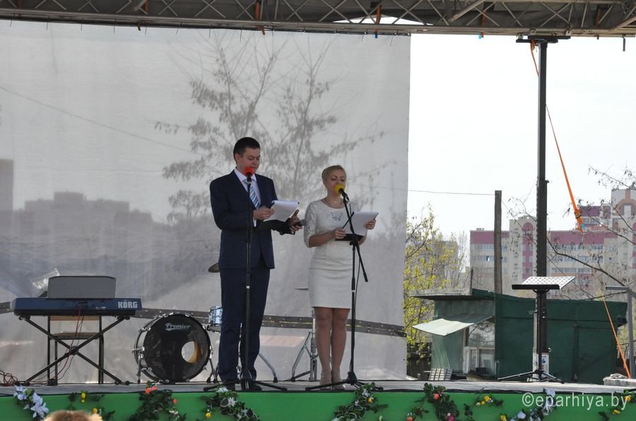 26 апреля – Неделя святых Жен-мироносиц - праздник, традиционно отмечаемый в рамках Пасхального фестиваля в приходе храма Преображения Господня г.Гомеля. С целью поздравить всех женщин, а также подарить хорошее настроение всем своим прихожан, а их в тот день было более 300, на территории храма состоялся праздничный концерт. В ходе торжества играла живая музыка, исполнялись душевные песни, звучали теплые слова искренних поздравлений. В начале мероприятия, обращаясь ко всем присутствующим Преосвященнейший Стефан отметил: «Благодаря женщинам, которые несут в дом тепло, любовь к своим мужьям, своим детям, внукам держится малая - домашняя Церковь, на основе которой стоит Церковь Православная». Затем Владыка вручил свидетельство об окончании обучения выпускникам старшей группы воскресной школы прихода храма Преображения Господня. В этом году день Жен-мироносиц совпал с трагической датой — 29-летием со дня аварии на Чернобыльской АЭС. В ходе концерта с особой теплотой звучали слова поздравления женщинам-ликвидаторам аварии, матерям и женам людей, принимавших участие в ликвидации последствий Чернобыльской катастрофы. Каждой из них были преподнесены весенние цветы. В праздничном концерте принимали участие художественные коллективы государственных учреждений образования, дуэт баянистов «НеБоян style», а эффектным завершением торжества стало выступление эстрадно-духового оркестра г.Гомеля под управлением В.Кравца. В ходе мероприятия проходила акция по сбору средств Даше Левченко. С рождения ей поставили диагноз: эпилепсия с частыми тонико-клоническими приступами, ДЦП статическая форма 3 степени с выраженными двигательными нарушениями, микроцефалия, задержка психомоторного и речевого развития. Дашенька очень нуждается в прохождении курса реабилитации в центре "Адели" в Словакии. |