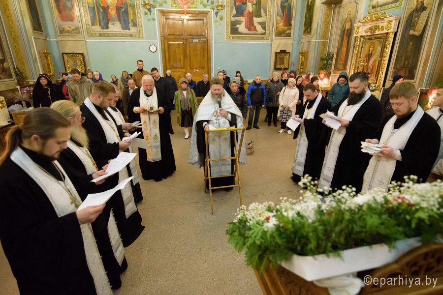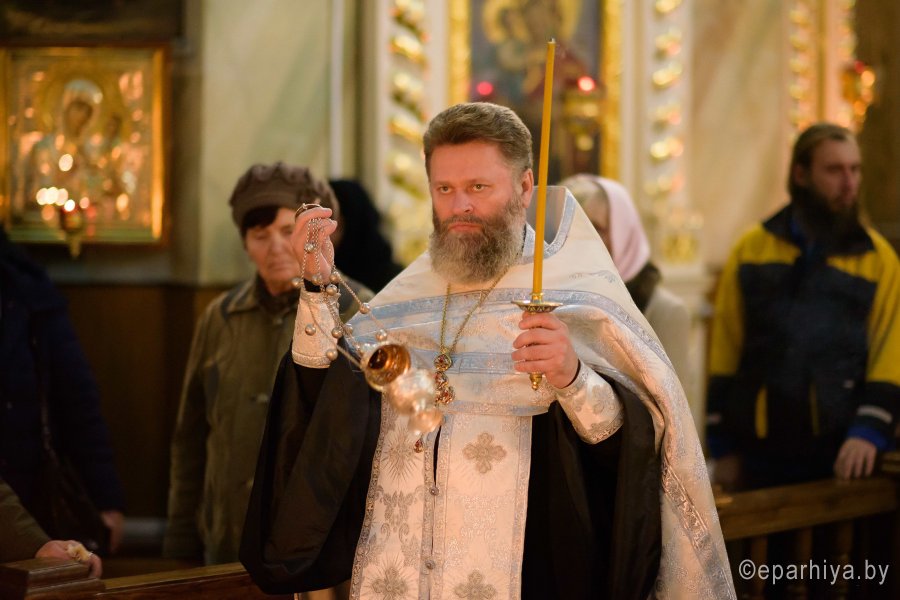 Вечернее богослужение в канун дня памяти св.вмц. Параскевы Пятницы 9 ноября 2018г. Высокопреосвященный Стефан в сослужении духовенства собора совершил в Петро-Павловском кафедральном соборе г.Гомеля. По окончании богослужения Владыка обратился к молящимся со словами Архипастырского назидания. |