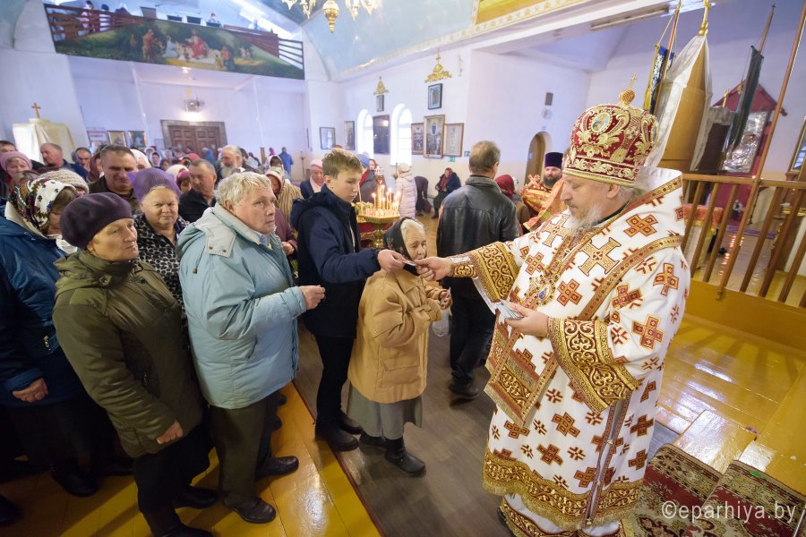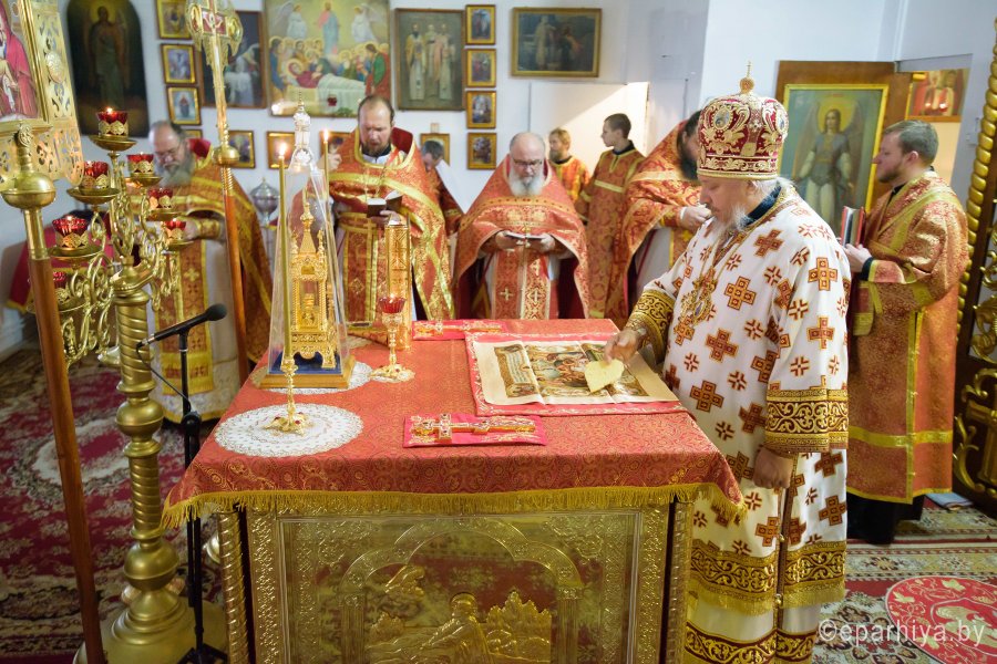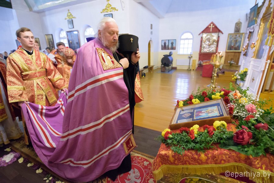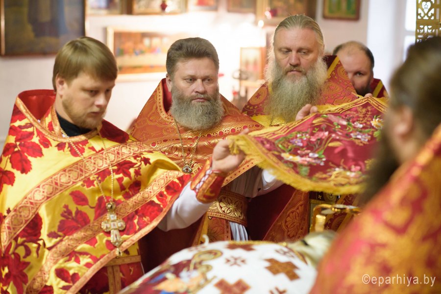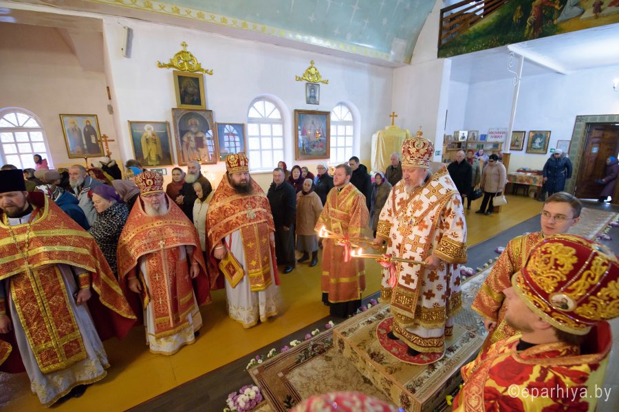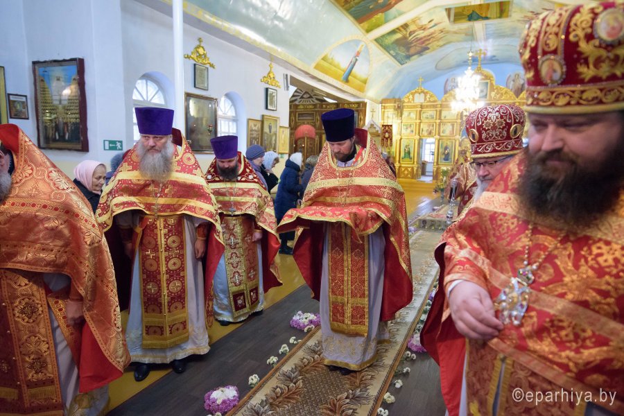 10 ноября 2018г., в день памяти святой великомученицы Параскевы Пятницы, Высокопреосвященный Стефан совершил Божественную литургию в храме Святой Живоначальной Троицы г.п.Лоев. Высокопреосвященному сослужили: секретарь Гомельской епархии протоиерей Георгий Алампиев, благочинный монастырей Гомельской епархии архимандрит Амвросий (Шевцов), благочинный Речицкого округа протоиерей Алексей Пешко, благочинный Лоевского округа иерей Дмитрий Чварков и духовенство округа. К Божественной литургии был доставлен образ с частицей мощей святой великомученицы Параскевы Пятницы. По окончании богослужения архиепископ Гомельский и Жлобинский Стефан поздравил причастников с принятием Святых Христовых Таин, обратился к молящимся со словами Архипастырского назидания и в память об этом дне раздал всем присутствующим иконки. В Лоевском храме Святой Живоначальной Троицы хранится чудотворный образ христианской великомученицы III века святой Параскевы Пятницы. Православной Церковью память святой совершается 10 ноября (28 октября). Для лоевчан день памяти святой великомученицы - день особый. Более 300 лет назад Святая великомученица Параскева явила свой чудотворный образ для защиты жителей небольшого поселения от нашествия шведов и в знак благодарности верующие молитвенно поминают святую. |