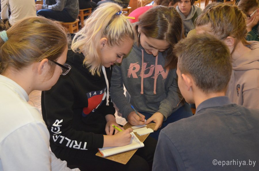 10 ноября в Центре творчества детей и молодежи "Ювента" состоялся интеллектуальный турнир по игре «Что? Где? Когда?», посвященный теме «Молодежь: свобода и ответственность», среди учащихся учреждений образования г. Светлогорска. В игре приняли участие более 60 человек из 11 команд. Вела турнир руководитель интеллектуального клуба «Альянс» г. Светлогорска Сафонова Ирина Викторовна. Команды отвечали на вопросы: что такое свобода, свобода слова, печати, совести, показали отличные знания в области православной веры, культуры и истории. Игра прошла живо и интересно. Она сопровождалась приветствием благочинного Светлогорского округа протоиерея Александра Киселя, комментариями священника и руководителя клуба, поздравлениями и награждением победителей. В завершение мероприятия участникам турнира были вручены дипломы, ручки, блокноты и сладкие подарки. |