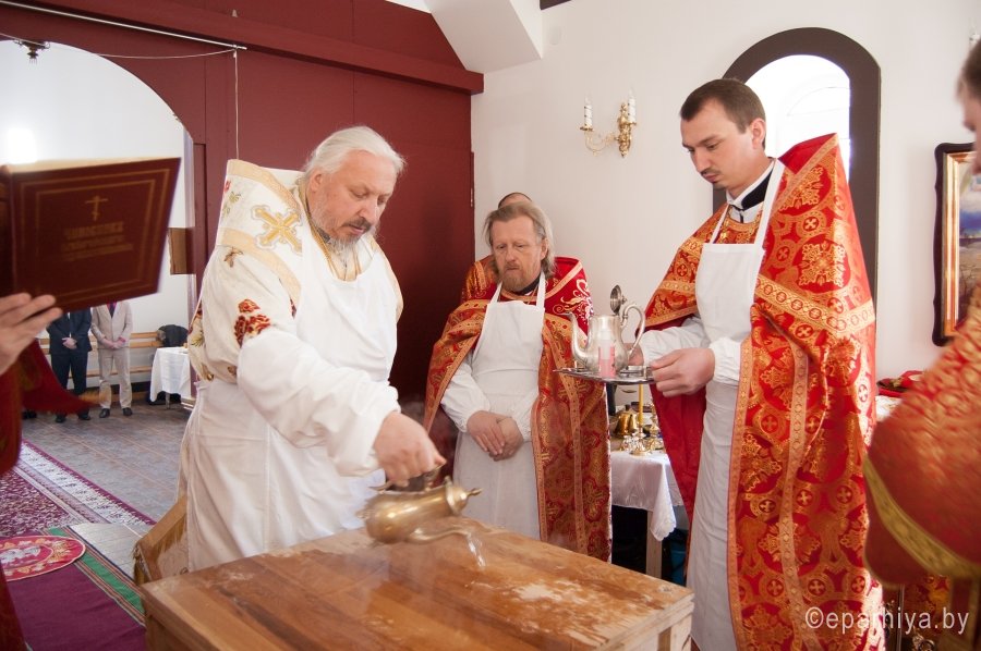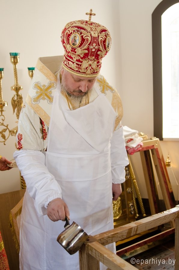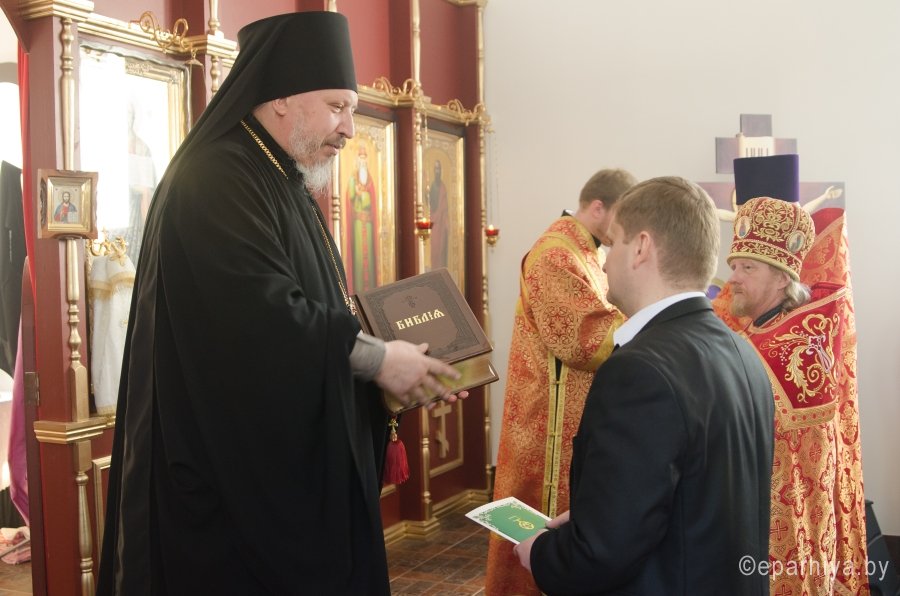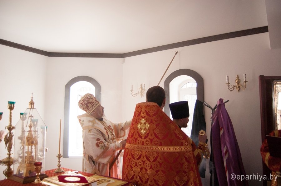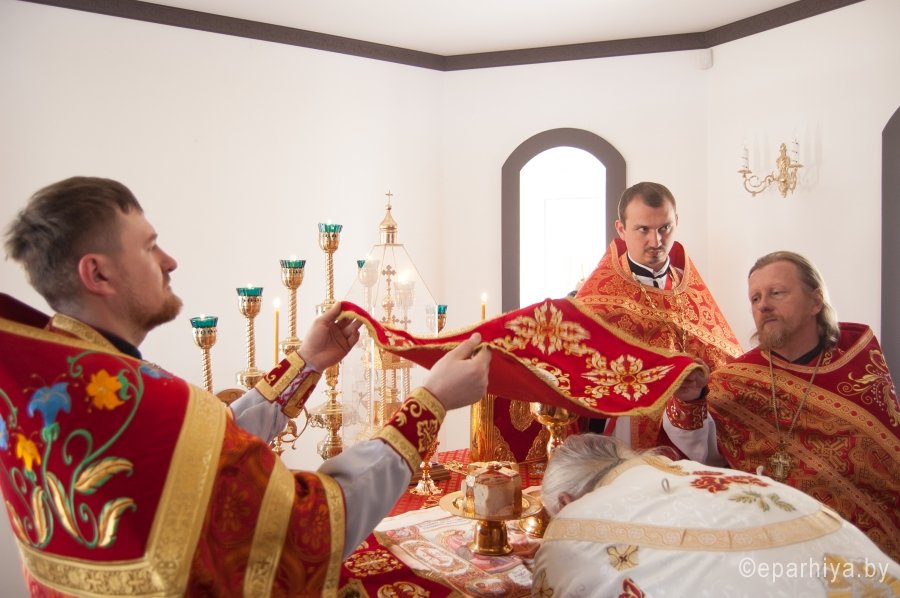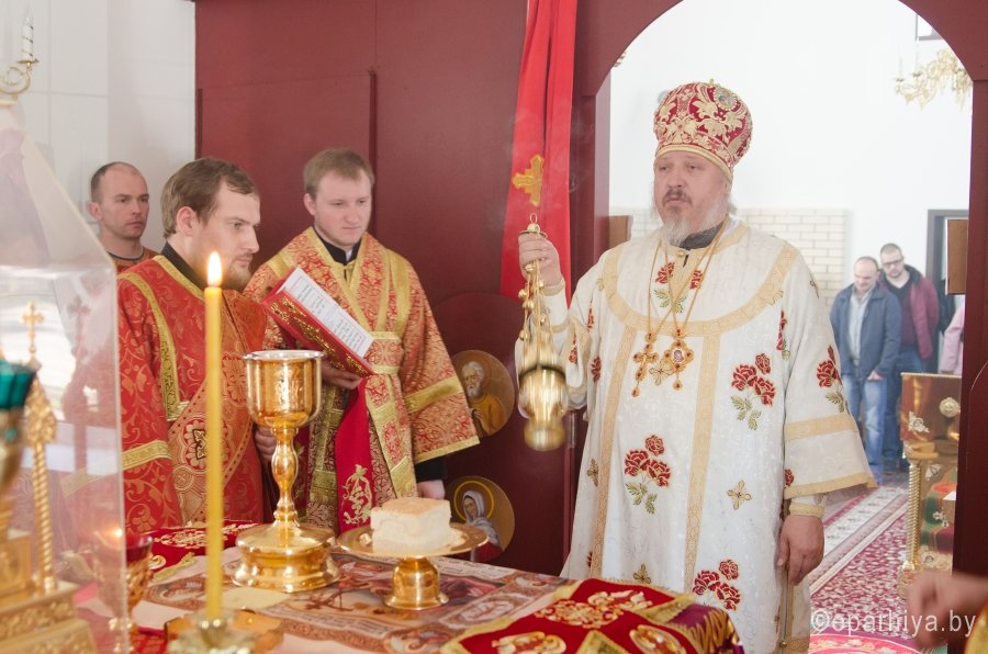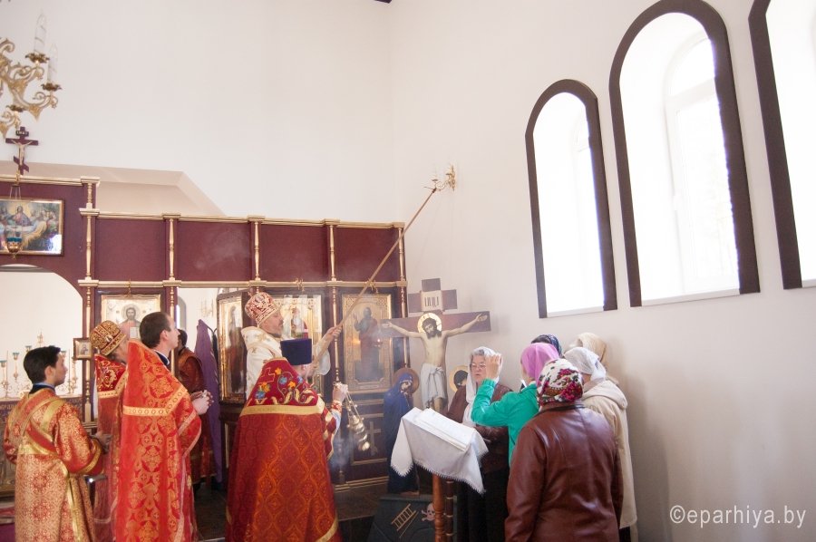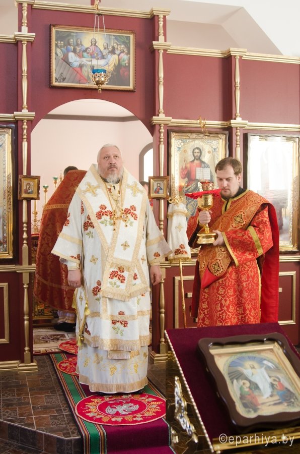 25 апреля 2015г. Преосвященный Стефан совершил Божественную литургию и чин освящения часовни в честь Св. Дионисия Полоцкого на городском кладбище г.Светлогорска. Преосвященнейшему сослужили: благочинный Светлогорского округа протоиерей Владимир Семенов, протоиерей Сергий Кисель, иерей Николай Бондарев. По окончании Божественной литургии Владыка поблагодарил меценатов за вклад в строительство часовни и вручил им медали и Архиерейские грамоты. |