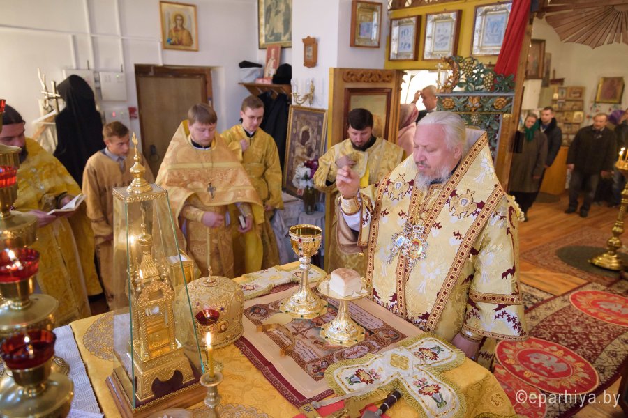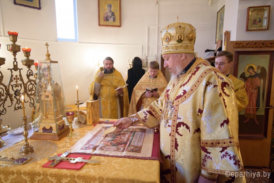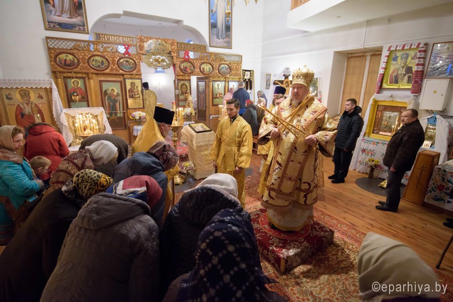 Божественную литургию в Неделю 24-ю по Пятидесятнице 11 ноября 2018г. Высокопреосвященный Стефан совершил в храме святителя Николая Чудотворца д.Даниловичи. Высокопреосвященному сослужили: секретарь Гомельской епархии протоиерей Георгий Алампиев, благочинный Чечерского округа протоиерей Георгий Шмидов и настоятель прихода протоиерей Андрей Булацкий. По окончании богослужения Владыка поздравил причастников с принятием Святых Христовых Таин и обратился к молящимся со словами Архипастырского назидания. |