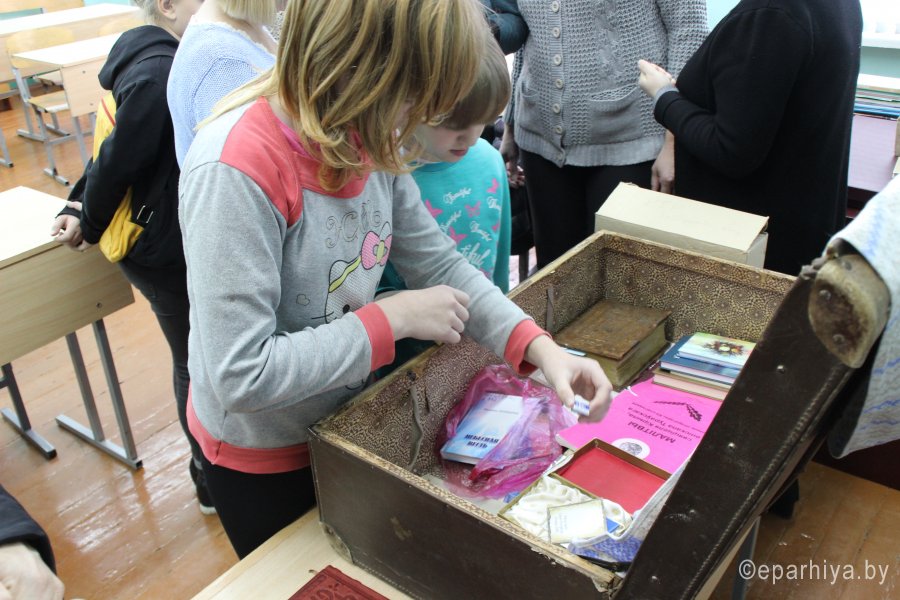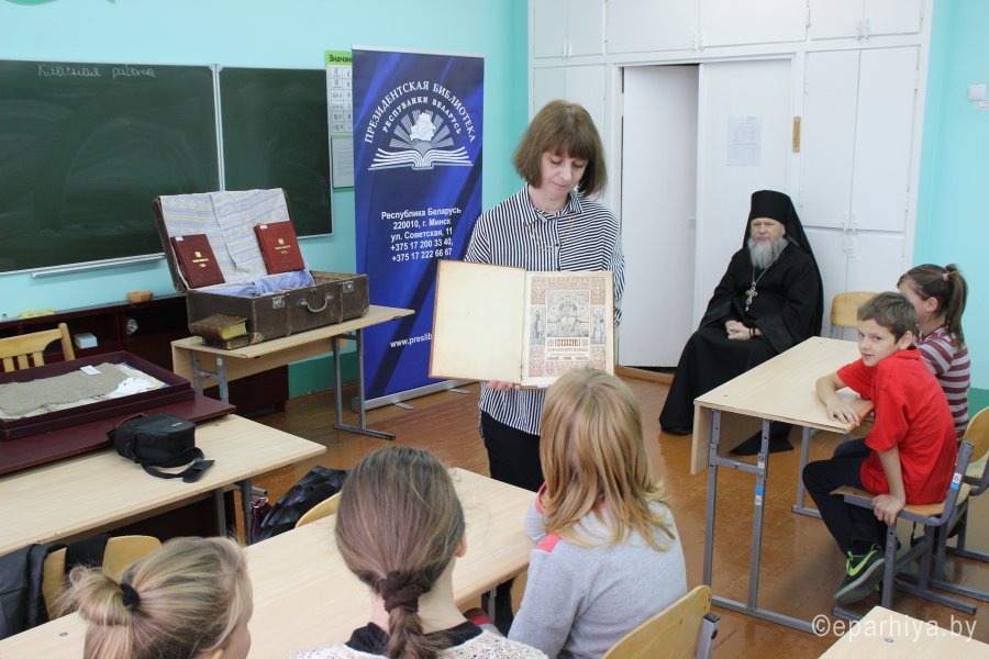 10 ноября по благословению архиепископа Гомельского и Жлобинского Стефана в рамках проведения IV Покровских образовательных чтений «Молодежь: свобода и ответственность» при участии Президентской библиотеки Республики Беларусь, прихода храма Святой великомученицы Варвары аг. Боровики, прихода храма святых двенадцати апостолов аг. Чирковичи, ГУО «Боровиковская средняя школа» и ГУО «Чирковичская средняя школа» в учреждениях образования для воспитанников воскресных школ, учащихся и педагогов была организована мобильная выставка «Музей в чемодане». На встречу были приглашены: заведующая отделом старопечатных и редких изданий Президентской библиотеки Республики Беларусь Павловицкая Светлана Дмитриевна, настоятель храмов архимандрит Алексий (Желенок), Почетный гражданин г. Светлогорска, член Союза писателей Беларуси и Союза российских писателей Изяслав Котляров, поэтесса Софья Шах. Целью данной выставки стало привлечение внимания молодежи к изучению христианских ценностей и ознакомление всех присутствующих с редкими православными старопечатными и раритетными изданиями, авторскими книгами, учебниками. В чемодане были представлены следующие издания: «Служебник» XVIIIв., «Минея»XIXв., учебники конца XVIII в., книги с автографами писателей, которые родились на Гомельщине, таких, как И. Шамякин, И. Мележ, А. Макаенак; книги авторов, которые проживают в г. Светлогорске – И. Котлярова и С. Шах. На выставке можно было увидеть современное издание «Франциск Скорина» на языках разных народов мира, книги, которые хранятся в коллекции довоенных изданий Президентской Библиотеки Республики Беларусь, например «Историческая геология», и другие издания.Эти книги были вывезены немецкими оккупантами в годы Великой Отечественной войны и были возвращены в библиотеку после ее окончания. Светлана Дмитриевна Павловицкая рассказала интересные факты из истории ценных изданий, ответила на вопросы ребят и педагогов. В завершение встречи архимандрит Алексий (Желенок) сказал: «Данное мероприятие, подобно семени, брошенному в плодородную почву душ молодежи, обязательно даст достойные духовные плоды», поблагодарил всех присутствующих за интересную и познавательную встречу, выразил надежду на дальнейшее плодотворное сотрудничество. Затем каждый желающий смог сделать фото на память. |