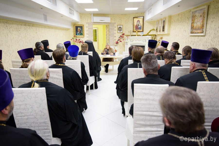 13 ноября 2018г. в рамках IV областных Покровских образовательных чтений в конференц-зале Петро-Паловского кафедрального собора г.Гомеля состоялась пастырская конференция "Митрополит Иосиф Семашко. Жизнь и деятельность". О жизненном пути митрополита-воссоединителя присутствующим рассказала доцент кафедры истории Беларуси нового и новейшего времени Белорусского государственного университета, профессор Минской духовной академии, кандидат исторических наук Валентина Анатольевна Теплова. По окончании конференции Высокопреосвященный Стефан выразил слова благодарности Валентине Анатольевне за интересный доклад. |