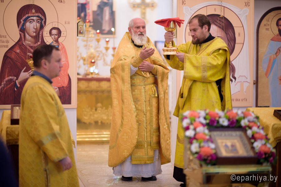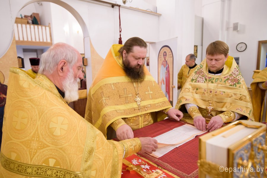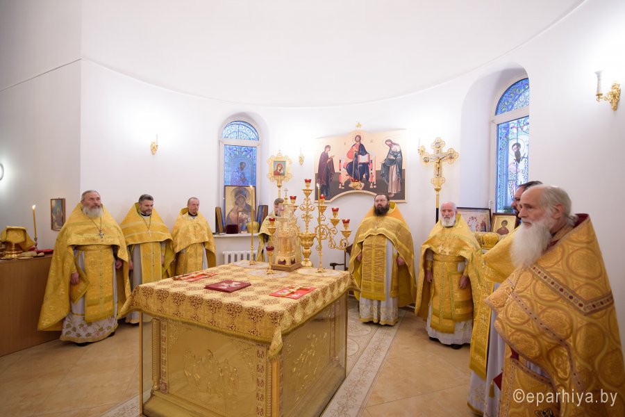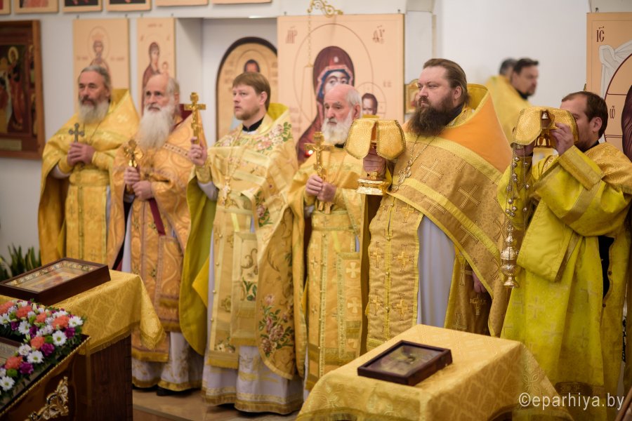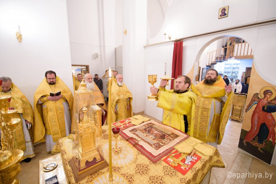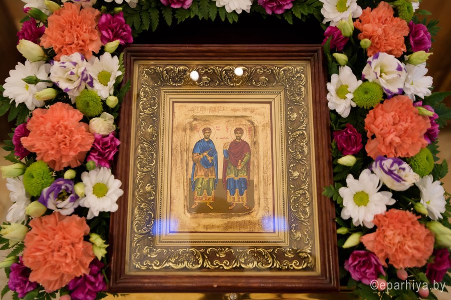 14 ноября 2018г., в день памяти бессребреников и чудотворцев Космы и Дамиана Азийских, благочинный монастырей Гомельской епархии архимандрит Амвросий (Шевцов) возглавил Божественную литургию в храме святого великомученика Пантелеимона в г.Гомеле, криптовый храм которого освящен в честь святых бессребреников и чудотворцев Космы и Дамиана Азийских. Его высокопреподобию сослужили: секретарь Гомельской епархии протоиерей Георгий Алампиев, духовник Гомельской епархии протоиерей Стефан Гладыщук, благочинный Гомельского городского округа, настоятель храма протоиерей Владимир Сулимов, настоятели храмов и духовенство Гомельской епархии. |