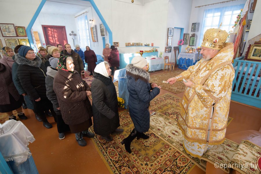 Божественную литургию в субботу 25-й седмицы по Пятидесятнице 17 ноября 2018г. Высокопреосвященный Стефан совершил в храме иконы Божией Матери "Всех скорбящих Радостей" д.Тереничи. Высокопреосвященному сослужили: секретарь Гомельской епархии протоиерей Георгий Алампиев, благочинный Гомельского районного округа протоиерей Артемий Кривицкий и настоятель прихода протоиерей Николай Мельников. По окончании богослужения Владыка поздравил причастников с принятием Святых Христовых Таин, обратился к молящимся со словами Архипастырского назидания и в память об этом дне раздал всем присутствующим иконки. |