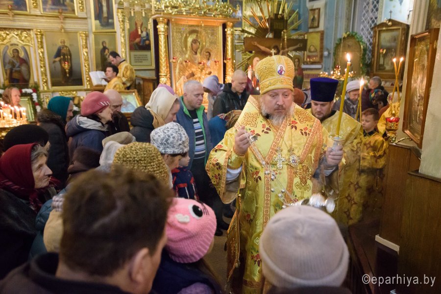 Всенощное бдение в канун Недели 25-й по Пятидесятнице 17 ноября 2018г. Высокопреосвященный Стефан совершил в Петро-Павловском кафедральном соборе г.Гомеля. Высокопреосвященному сослужили: секретарь Гомельской епархии протоиерей Георгий Алампиев и духовенство собора. По окончании богослужения Владыка обратился к молящимся со словами Архипастырского назидания. |