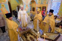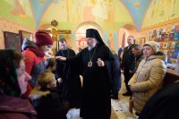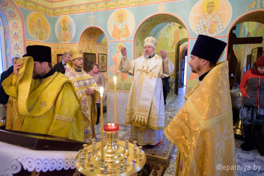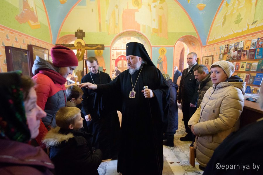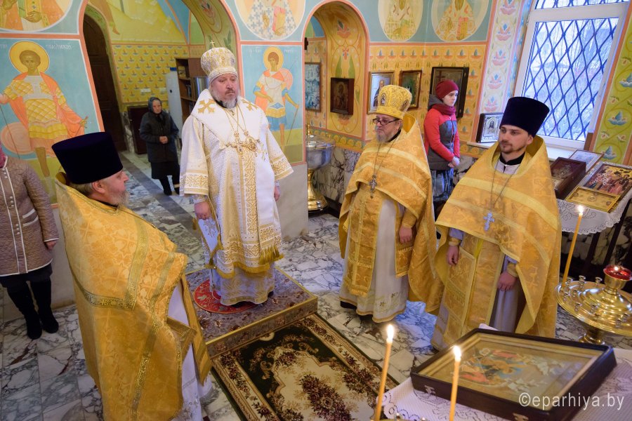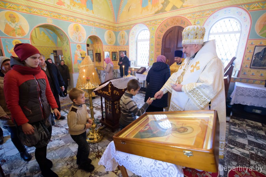 Божественную литургию в Неделю 25-ю по Пятидесятнице 18 ноября 2018г. Высокопреосвященный Стефан совершил в храме святителя Николая Чудотворца д.Железники. Высокопреосвященному сослужили: секретарь Гомельской епархии протоиерей Георгий Алампиев, благочинный Чечерского округа протоиерей Георгий Шмидов и духовенство округа. По окончании богослужения Владыка поздравил причастников с принятием Святых Христовых Таин, обратился к молящимся со словами Архипастырского назидания и в память об этом дне раздал всем иконки. |