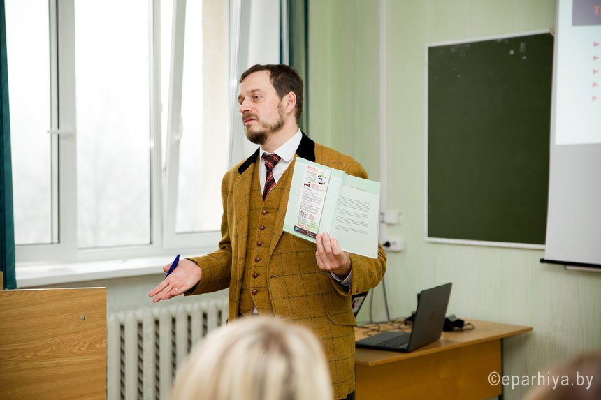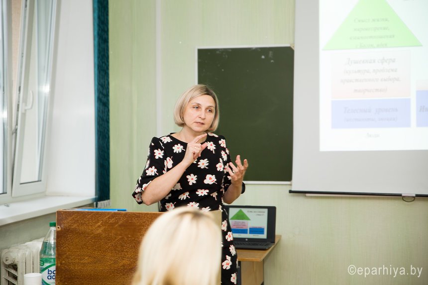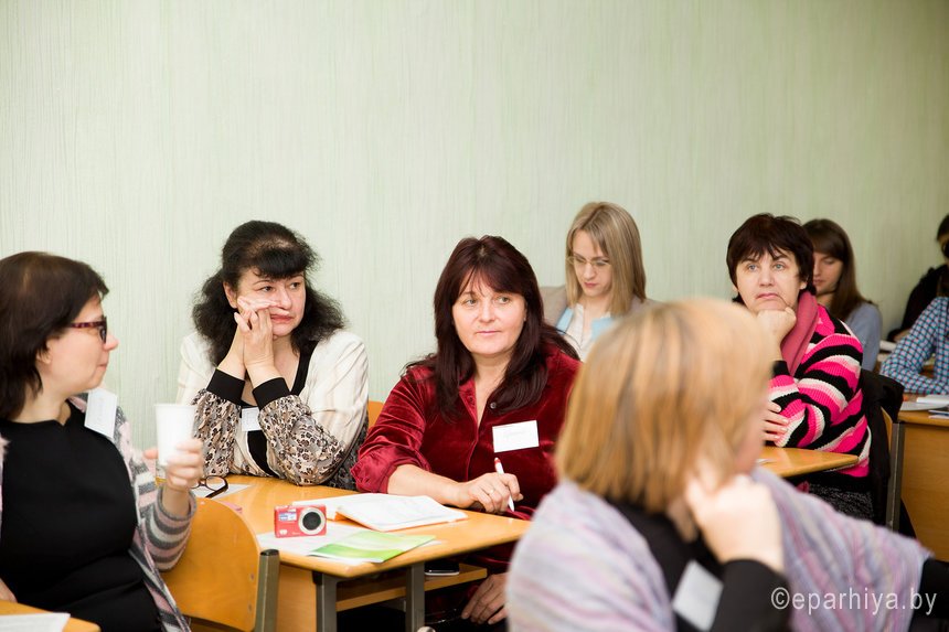 Усилиями трёх организаций: Гомельской епархии, Гомельского благотворительного общественного объединения «Центр поддержки семьи и материнства «Мамалето», УО «Гомельский областной институт развития образования» в Гомеле состоялся двухдневный семинар «Формирование позитивных установок на семейные ценности и здоровый образ жизни» с использованием выставочного комплекса для старшеклассников и молодёжи «Молодёжь – за жизнь, нравственность и семейные ценности». К участникам семинара со словами приветствия обратился председатель отдела религиозного образования и катехизации Гомельской епархии протоиерей Артемий Кривицкий, который пожелал всем плодотворной работы в этом столь нужном в нашем обществе направлении. «Мы уверены, что традиционная семья – неоспоримая базовая ценность, разрушение которой ведёт к гибели нравственности, культуры и личности. К счастью, в нашем мире по-прежнему встречаются люди, готовые тратить свои силы и время, чтобы потрудиться в деле формирования у подрастающего поколения традиционных семейных ценностей» - отметил о.Артемий. Далее с докладом «Глобальные угрозы семье и обществу» выступил доктор богословия, директор благотворительного фонда «Открытые сердца» (г.Могилёв), В.А.Волохович. Рассказывая о истории семьи как социального института, он отметил, что: «она тесно связана с демографическими процессами, приобретшими в современном мире всё более негативные черты. В Европе, Азии, Африке, на Ближнем Востоке мы видим одни и те же процессы: радикальное снижение рождаемости, увеличение числа сожительств, откладывание деторождения «на потом», увеличение числа людей, никогда не состоящих в браке и т.д. Беларусь, к сожалению, не является исключением». Далее опытом проведения духовно-нравственной беседы с использованием выставки для молодёжи «За жизнь, нравственность и семейные ценности» поделилась методист благотворительного фонда имени преподобной Ефросинии Полоцкой (г.Минск) Е.И.Ярошевич. Разделы выставки поднимают темы любви и влюблённости, целомудрия и верности, мужественности и женственности, святости материнства и отцовства, смысла жизни и др., заставляя задуматься над этими насущными вопросами. О духовно-нравственных проблемах взросления подростков и формировании сознания в этом возрасте рассказала участникам семинара Е.Н.Шевелева, детский и семейный психолог МОБО «Центр поддержки семьи и материнства «Матуля» (г.Минск), магистр социалных наук Манчестерского университета. Руководитель белорусского молодежного благотворительного общественного объединения «Город без наркотиков»(г.Минск) Петр Борисович Шапко поделился опытом проведения профилактических бесед с подростками по вопросам различных видов зависимостей, рассказал о гражданско-патриотическом воспитании, проводимым участниками объединения, в том числе поделился многолетним опытом проведения военно-патриотических лагерей для подростков. О.В.Нестерова, врач акушер – гинеколог, член правления ГБОО «Центр поддержки семьи и материнства «Мамолетто» (г.Гомель) ознакомила участников семинара с проводимой в учреждениях образования просветительской работой со старшеклассниками по теме репродуктивного здоровья. Мастер- класс по эвристическому анализу, как методу работу со старшеклассниками в сфере семейных ценностей