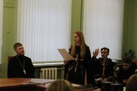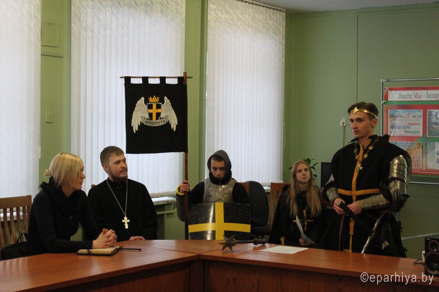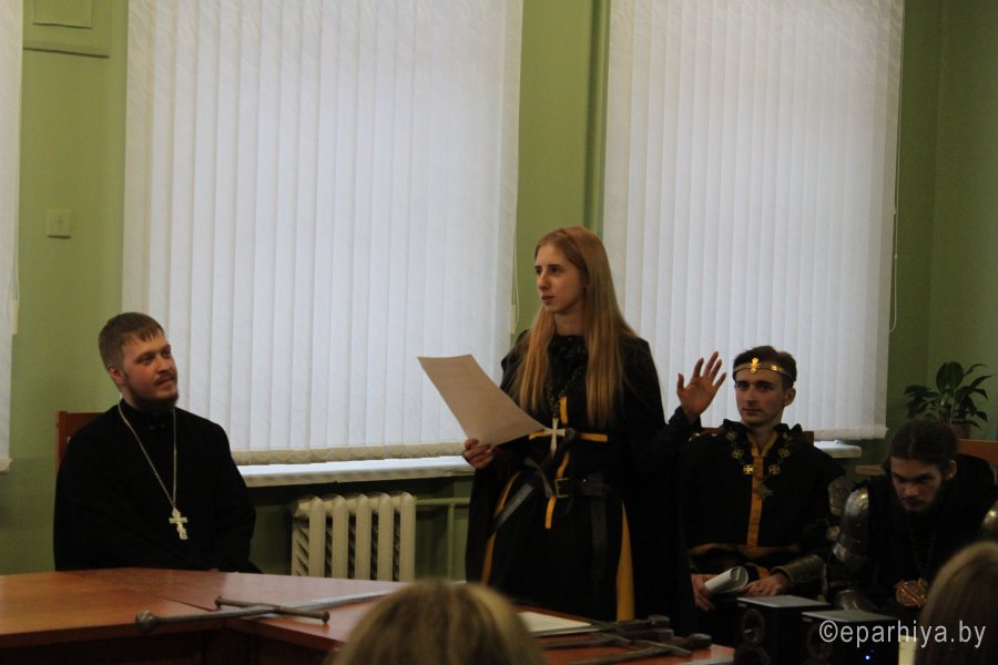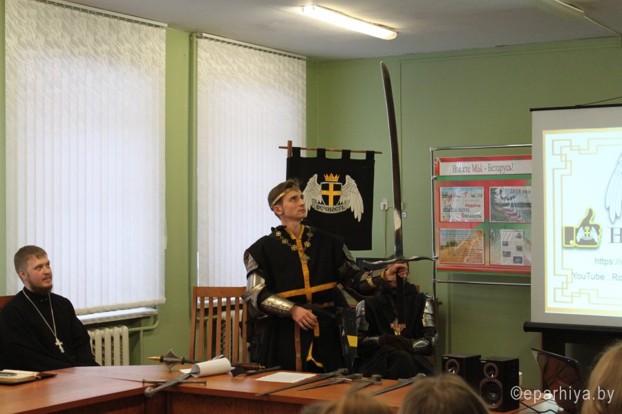В рамках IV областных Покровских образовательных чтений «Молодежь: свобода и ответственность», Молодежный отдел Гомельской епархии провел секцию «Церковь и молодежь» на тему «Истоки древности и современный реализм». Целевой аудиторией стали учащиеся 2 курсов специальностей «Дошкольное образование» и «Начальное образование» УО «Гомельский государственный педагогический колледж им. Л.С. Выготского». Целью проведения данной секции было повышение информированности учащихся о деятельности и реализации проектов православной молодежи и призыв их к участию в этой деятельности. Круглый стол проходил в режиме живого общения и дискуссий. Специальными гостями стали участники «Театра исторической стилизации «Вечность», которые во время круглого стола раскрыли вопросы об истории формирования православного вероучения, о реализации себя и раскрытии своих талантов во время подготовки и участия в рыцарских поединках, «крестовых походах», тематических соревнованиях и мероприятиях. |