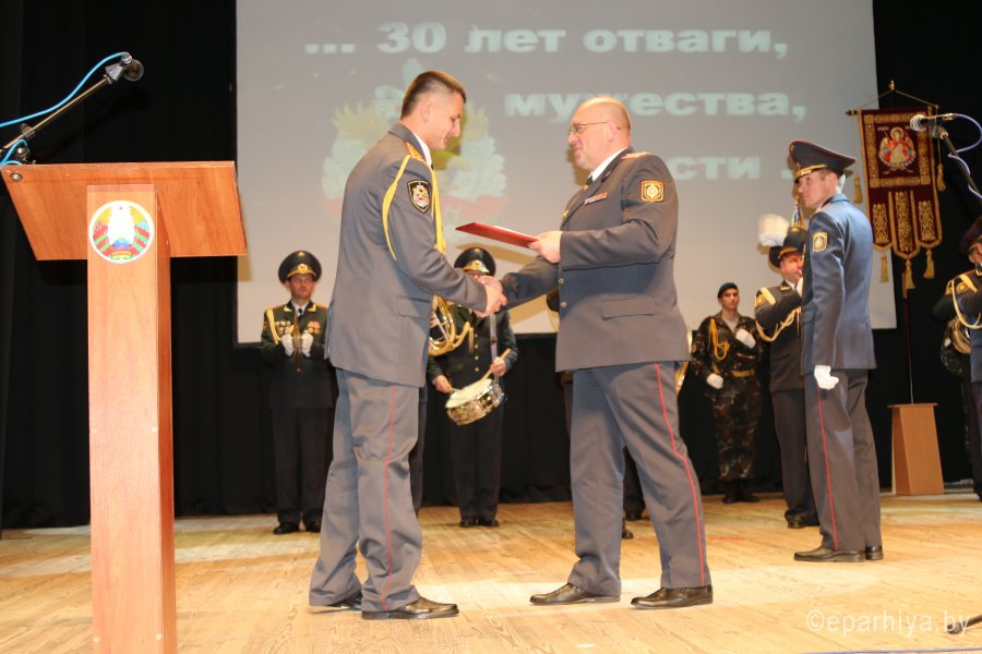 22 ноября во Дворце культуры «Гомсельмаш» состоялся праздничный концерт, посвященный 30-летию ОМОН УВД Гомельского облисполкома, на котором присутствовал председатель отдела по взаимодействию с Вооруженными Силами и правоохранительными органами протоиерей Игорь Ольшанов. На протяжении 30 лет ОМОН достойно охраняет общественный порядок, надежно защищает интересы государства, права, честь и достоинство граждан. Лучшие сотрудники отряда милиции специального назначения получили заслуженные награды за высокие результаты в их деятельности. |