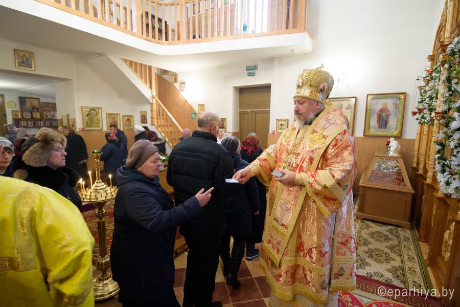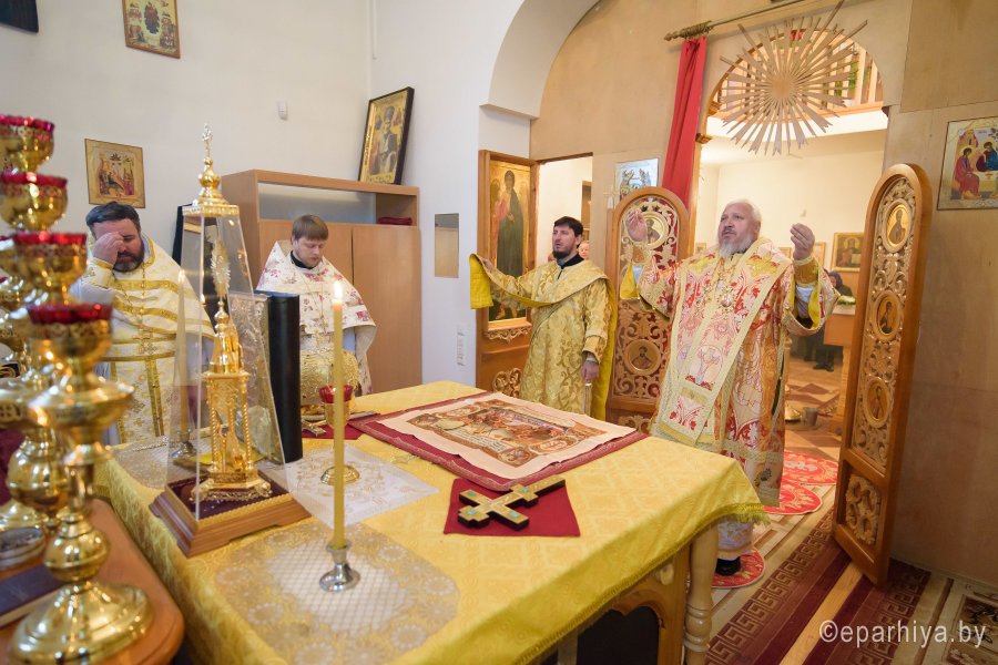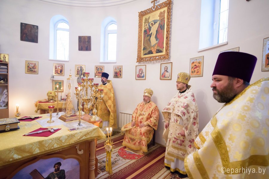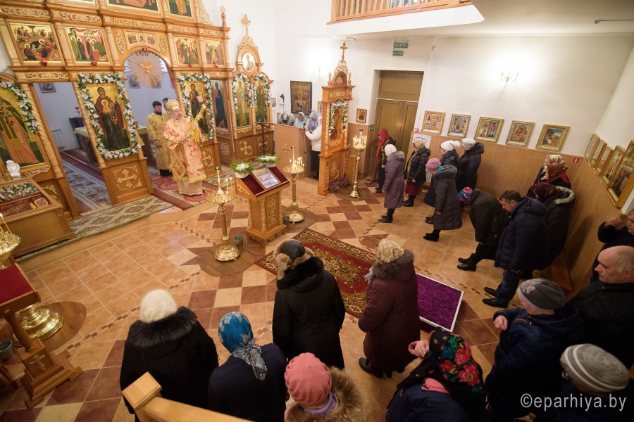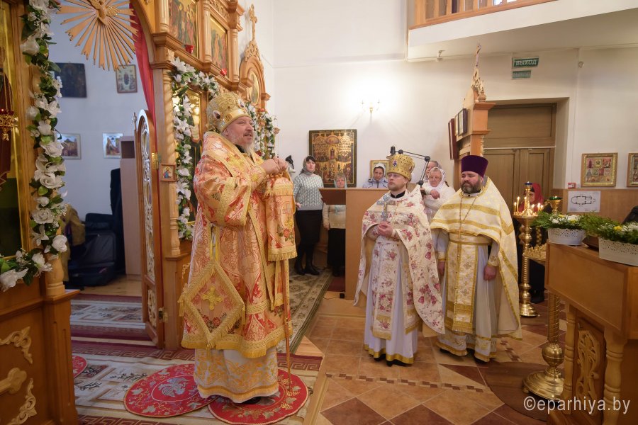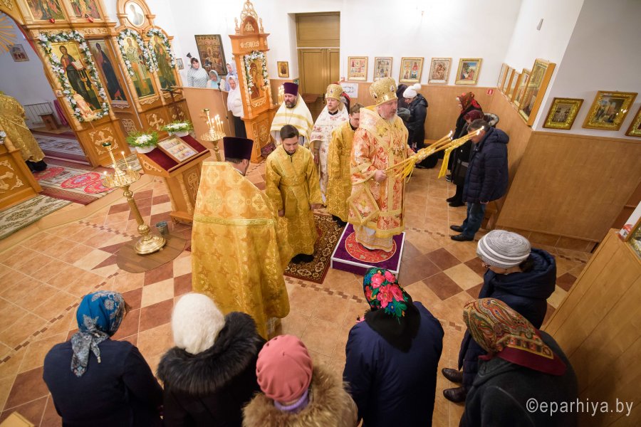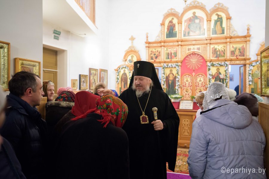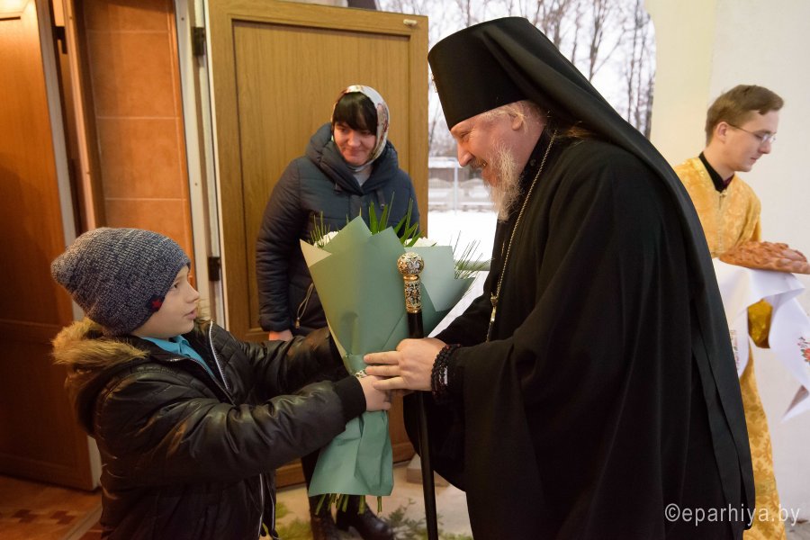 Божественную литургию в субботу 26-ю по Пятидесятнице 24 ноября 2018г. Высокопреосвященный Стефан совершил в храме святителя Николая Чудотворца д.Романовичи. Высокопреосвященному сослужили: секретарь Гомельской епархии протоиерей Георгий Алампиев, благочинный Гомельского районного округа протоиерей Артемий Кривицкий и настоятель прихода иерей Николай Лобжа. По окончании богослужения Владыка поздравил причастников с принятием Святых Христовых Таин, обратился к молящимся со словами Архипастырского назидания и в память об этом дне раздал всем иконки. |