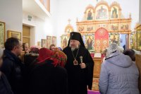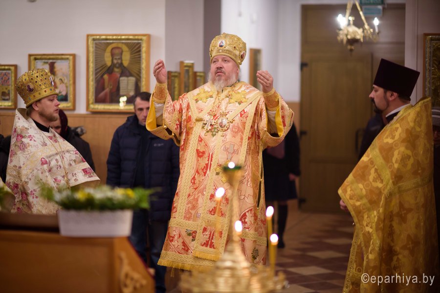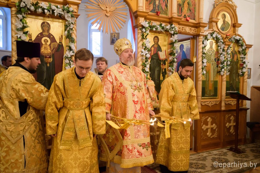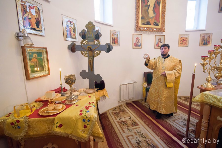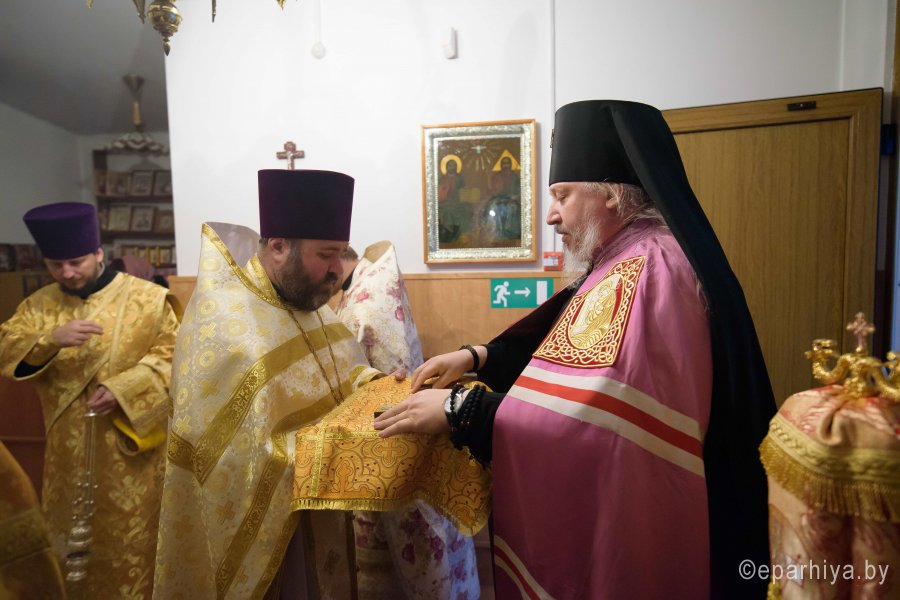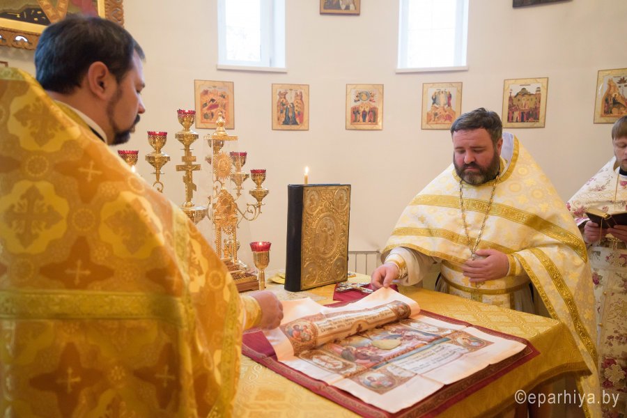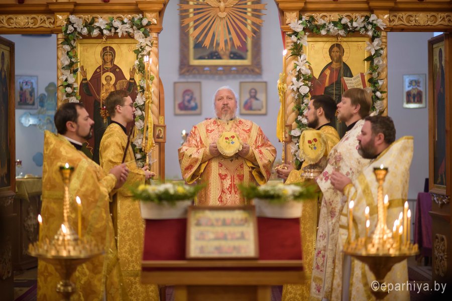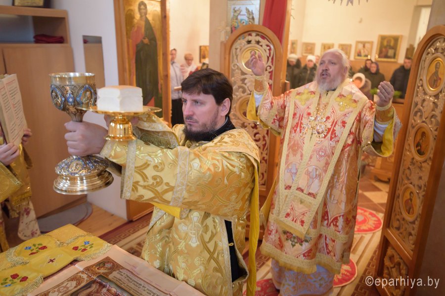 Божественную литургию в субботу 26-ю по Пятидесятнице 24 ноября 2018г. Высокопреосвященный Стефан совершил в храме святителя Николая Чудотворца д.Романовичи. Высокопреосвященному сослужили: секретарь Гомельской епархии протоиерей Георгий Алампиев, благочинный Гомельского районного округа протоиерей Артемий Кривицкий и настоятель прихода иерей Николай Лобжа. По окончании богослужения Владыка поздравил причастников с принятием Святых Христовых Таин, обратился к молящимся со словами Архипастырского назидания и в память об этом дне раздал всем иконки. |