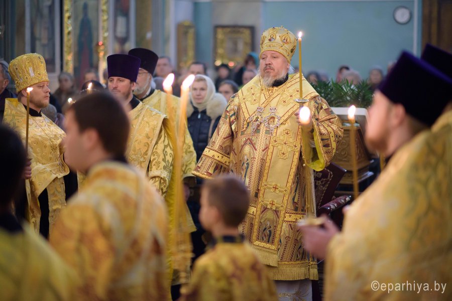 Всенощное бдение в канун Недели 26-й по Пятидесятнице 24 ноября 2018г. Высокопреосвященный Стефан совершил в Петро-Павловском кафедральном соборе г.Гомеля. Высокопреосвященному сослужили: секретарь Гомельской епархии протоиерей Георгий Алампиев и духовенство собора. По окончании богослужения Владыка обратился к молящимся со словами Архипастырского назидания. |