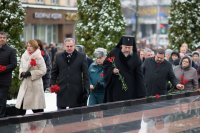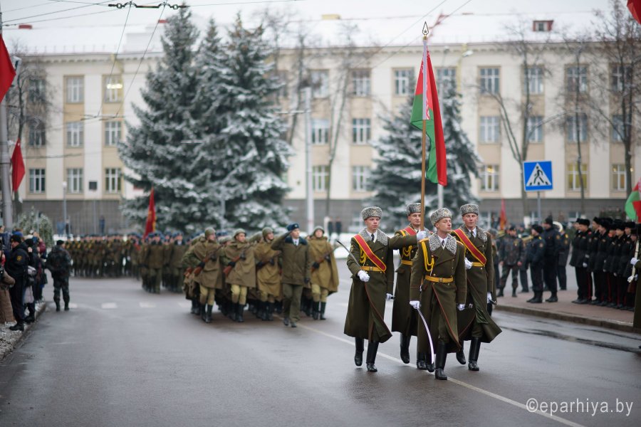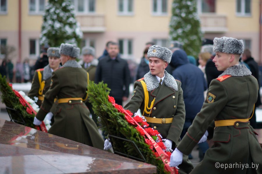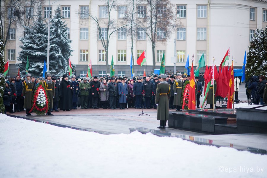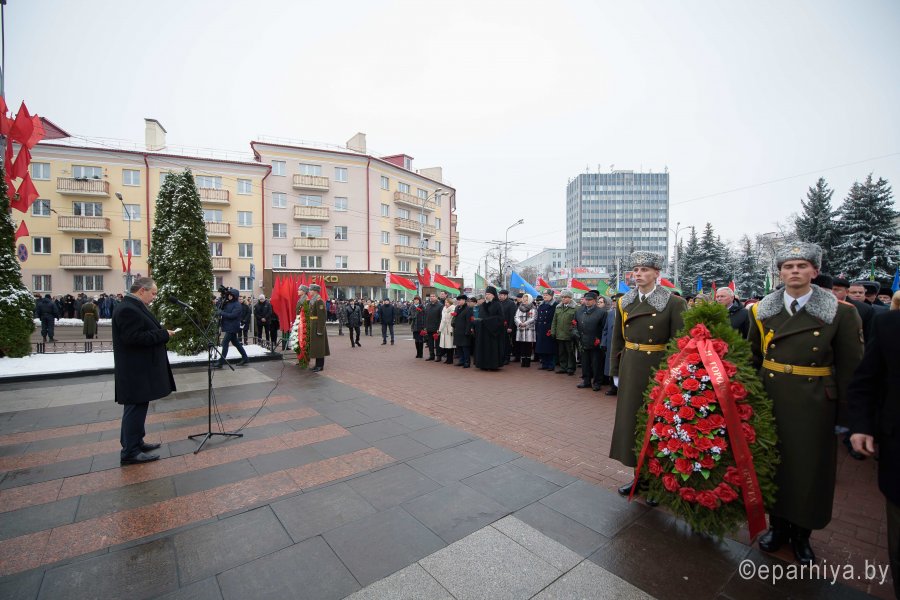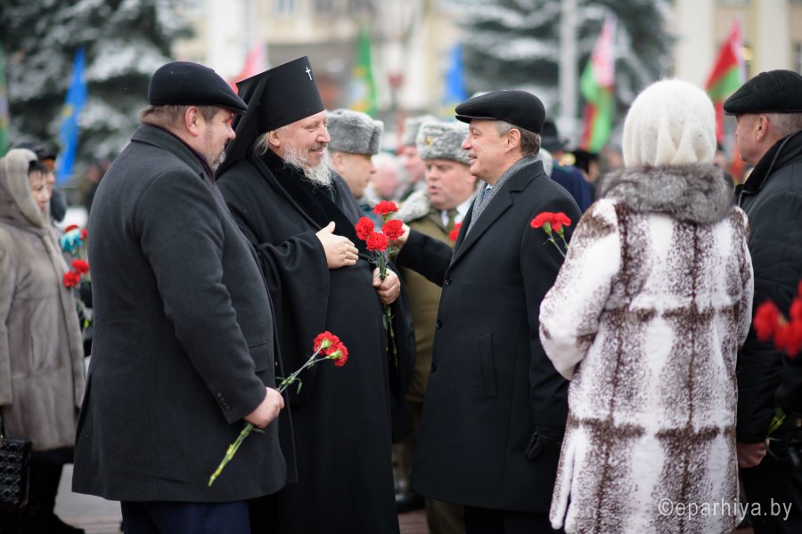 26 ноября 2018г. Высокопреосвященный Стефан принял участие в торжественном митинге, посвященном 75-й годовщине освобождения Гомеля от немецко-фашистских захватчиков. В торжественном митинге также принимали участие руководство области и города, ветераны Великой Отечественной войны, в подполье и партизанских отрядах ковавшие победу, представители предприятий и общественных организаций. — Вероломное вторжение врага нарушило мирные планы горожан, которые хотели счастливо жить и трудиться, — вернулся к военным событиям в поздравительной речи председатель горисполкома Петр Кириченко. — Взятие города дорого обошлось захватчикам: в ходе боев на гомельском направлении они потеряли более 80 тысяч солдат и офицеров, около ста самолетов, двести танков и другой техники. К могиле воинов легли цветы. Светлую память героев, освободивших Гомель, горожане почтили минутой молчания. По окончании митинга в Общественно-культурном центре состоялся праздничный концерт. |