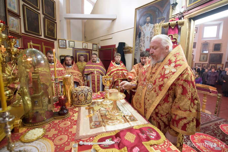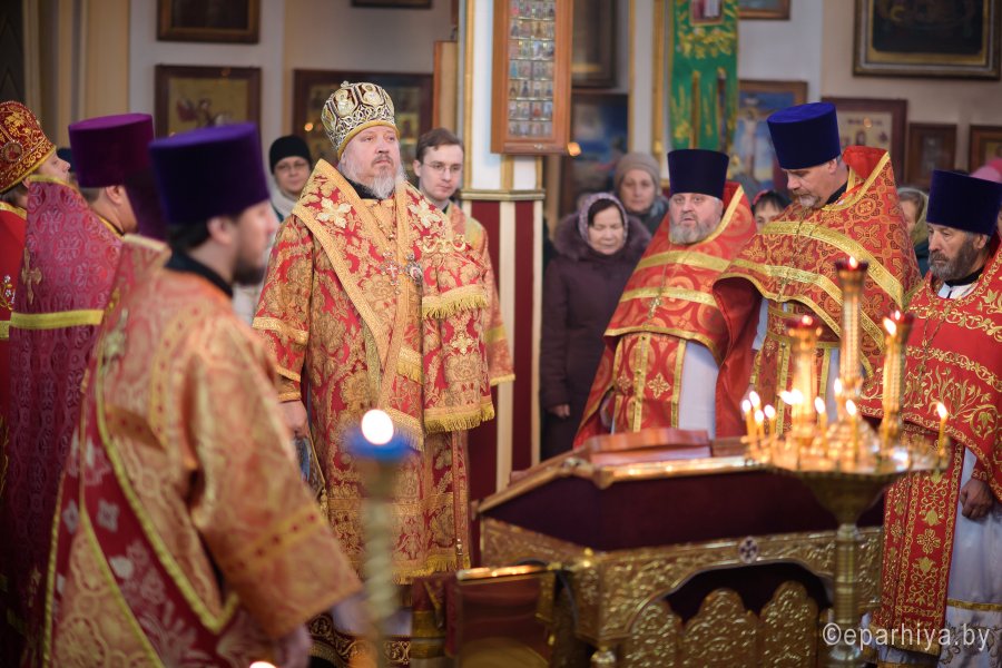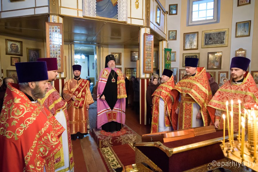 Божественную литургию в среду 27-й седмицы по Пятидесятнице 28 ноября 2018г. Высокопреосвященный Стефан совершил в храме Преображения Господня г.Чечерска. Высокопреосвященному сослужили: секретарь Гомельской епархии протоиерей Георгий Алампиев, благочинный Чечерского округа протоиерей Георгий Шмидов и духовенство округа. За богослужением Владыка удостоил правом ношения наперсного креста настоятеля храма святителя Николая Чудотворца д.Полесье иерею Николаю Куцакову. По окончании богослужения Владыка поздравил причастников с принятием Святых Христовых Таин, обратился к молящимся со словами Архипастырского назидания и в память об этом дне раздал всем иконки. |
