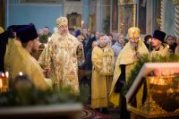 Всенощное бдение в канун Недели 27-й по Пятидесятнице 2 декабря 2018г. Высокопреосвященный Стефан совершил в Петро-Павловском кафедральном соборе г.Гомеля в сослужении духовенства собора. По окончании богослужения Владыка обратился к молящимся со словами Архипастырского назидания. |