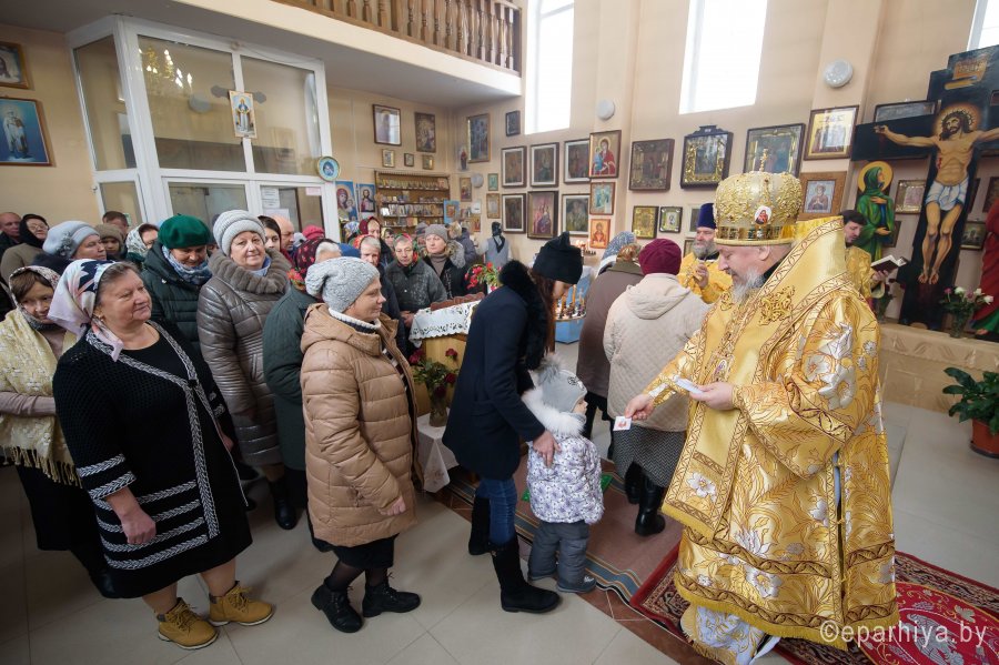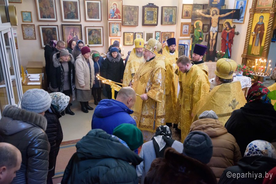 Божественную литургию в Неделю 27-ю по Пятидесятнице 2 декабря 2018г. Высокопреосвященный Стефан совершил в храме Покрова Пресвятой Богородицы пос. Коммунар. Высокопреосвященному сослужили: благочинный Буда-Кошелевского округа протоиерей Сергий Пешко и духовенство епархии. По окончании богослужения Владыка поздравил причастников с принятием Святых Христовых Таин, обратился к молящимся со словами Архипастырского назидания и в память об этом дне раздал всем иконки. |