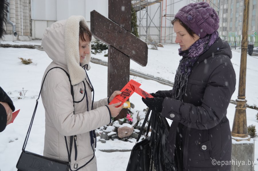 Ежегодно 1 декабря международная общественность отмечает Всемирный день борьбы со СПИДом. В этот день у памятного знака «Помнить. Жить. Быть рядом», установленного на территории храма Преображения Господня в г. Светлогорске по инициативе РОО «Белорусское сообщество лиц, живущих с ВИЧ», жители города и духовенство Светлогорского благочиния молились о здравии людей, живущих с ВИЧ. По окончании молебна благочинный Светлогорского округа протоиерей Александр Кисель обратился к прихожанам с проповедью. – В этот день мы собрались, чтобы обратиться к милостивому Господу в молитве с просьбой о защите от бед и болезней. Православная Церковь не стоит в стороне от проблемы заболевания вирусом иммунодефицита человека, — сказал священник. – Наше орудие борьбы – проповедь о духовно-нравственном воспитании детей и молодежи. Задача Церкви – напоминать людям о необходимости соблюдения заповедей Божиих, о верности в супружеской жизни. Православная Церковь призывает к состраданию, милосердию и помощи людям, живущим с ВИЧ, и мы должны молиться об их исцелении. Затем православная молодежь раздала информационные буклеты о ВИЧ/СПИД с целью повышения уровня информированности населения о заболевании, принципах безопасного поведения, предупреждения проявлений дискриминации в отношении людей, живущих с ВИЧ. |