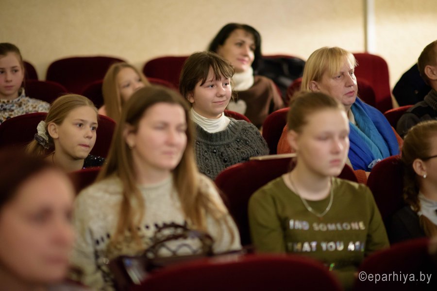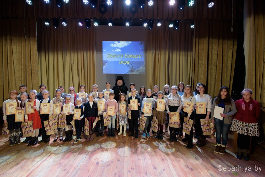 «Сколько красоты в мире! Каким голубым бывает небо днём, какими дивными цветами окрашивается оно вечером! А как величественно и красиво море! Не хватит человеческой жизни, чтобы описать всю красоту сотворённого мира»- такими словами в концертном зале Гомельского государственного областного Дворца творчества детей и молодёжи открылся тематический концерт, который явился своеобразным итогом проведения регионального этапа Международного конкурса детского творчества «Красота Божьего мира». Данный конкурс проводиться с целью нравственного и патриотического воспитания подрастающего поколения, приобщения молодежи к православной и мировой культуре, способствует выявлению и раскрытию молодых талантов, служит созданию среды для творческого общения детей и юношества. На рассмотрение жюри было представлено около 500 детских работ, подготовленных воспитанниками воскресных школ Гомельской епархии, обучающимися учреждений дошкольного, общего среднего, профессионально-технического и среднего специального образования, дополнительного образования детей и молодёжи.В нынешнем году 35 детских работ было удостоено дипломом победителя и лауреата Конкурса. Вниманию посетителей в мраморном холле Дворца была развёрнута выставка творческих работ, участников конкурса, а в зрительном зале детям и родителям была представлена музыкальная программа, почётными гостями которой стали архиепископ Гомельский и Жлобинский Стефан и председатель отдела религиозного образования и катехизации Гомельской епархии протоиерей Артемий Кривицкий. Своими песнями, танцами, стихами, прославляющими Того, кто сотворил весь окружающий нас мир, в котором мы живём, делились со сцены воспитанники воскресной школы прихода храма святых благоверных князей Петра и Февронии Муромских в г.Гомеле, святого преподобного Серафима Саровского в г.Гомеле и Петро-Павловского кафедрального собора, а также многочисленные вокальные и хореографические коллективы:образцовый ансамбль скрипачей «Визави» средней школы № 67 г.Гомеля, образцовый ансамбль «Серпантин» средней школы № 53 г.Гомеля, хореографический коллектив Детской школы искусств № 5 г.Гомеля и др. Завершилась концертная программа торжественной церемонией награждения победителей Конкурса |