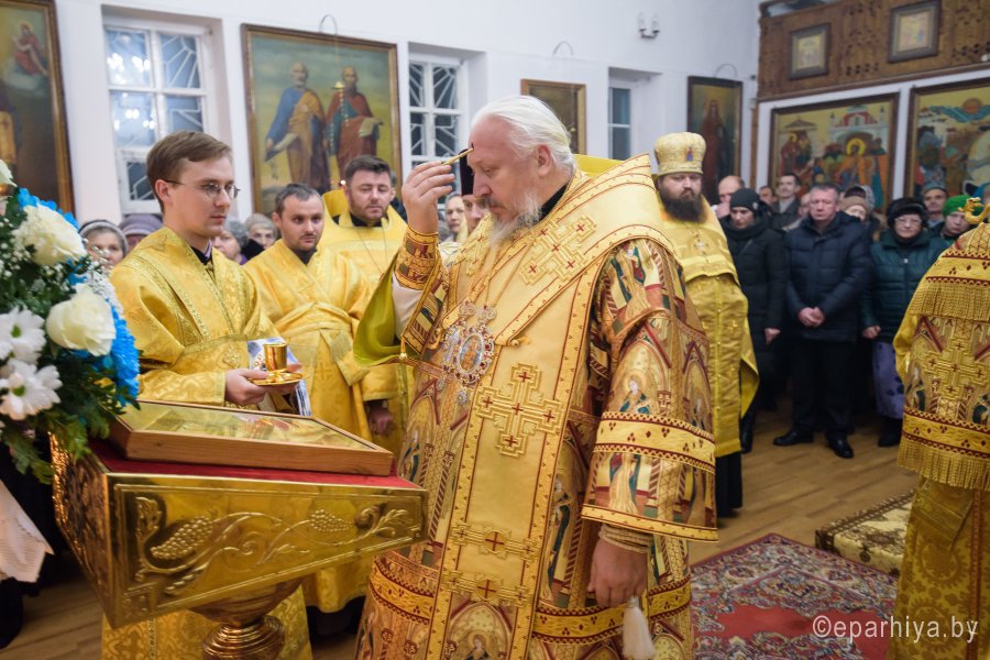 Всенощное бдение в канун дня памяти святого благоверного князя Александра Невского Высокопреосвященный Стефан совершил в одноименном храме г.Рогачева. Высокопреосвященному сослужили: благочинный монастырей Гомельской епархии архимандрит Амвросий (Шевцов), благочинный Рогачевского округа протоиерей Алексей Смотрицкий и духовенство округа. По окончании богослужения Владыка обратился к молящимся со словами Архипастырского назидания. |