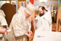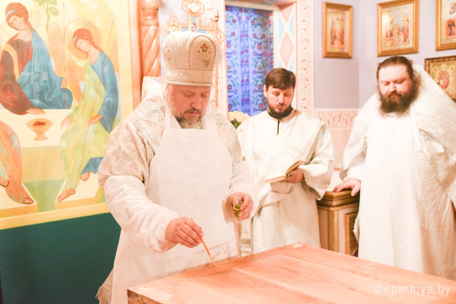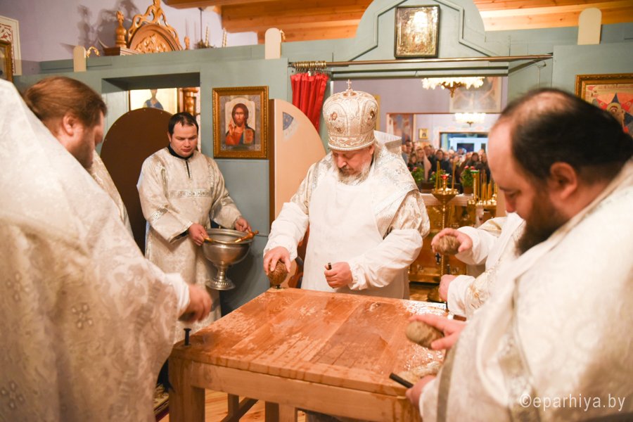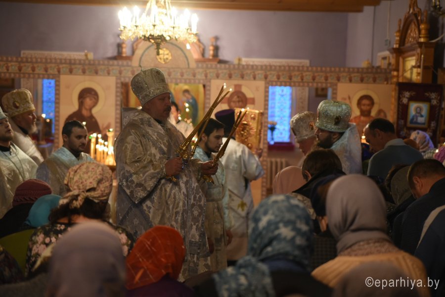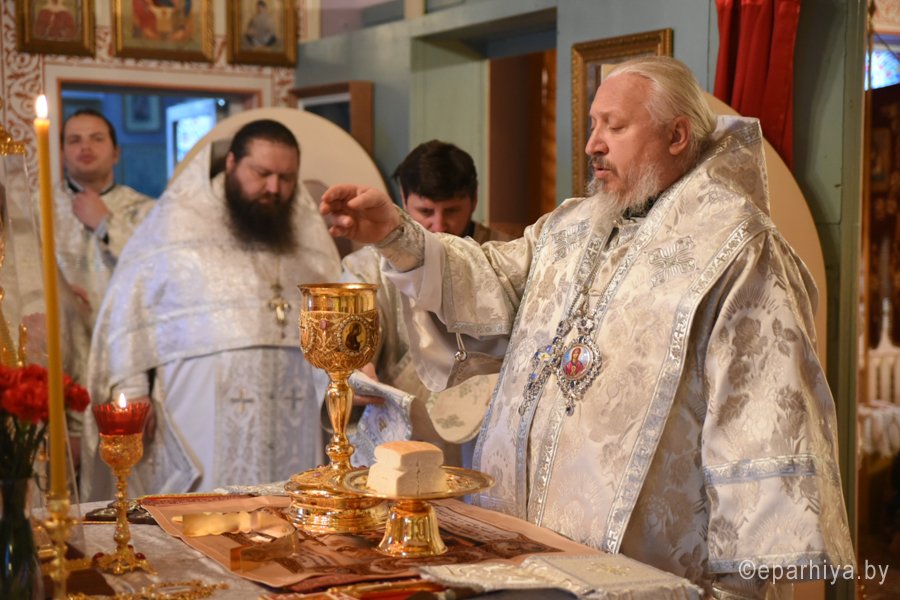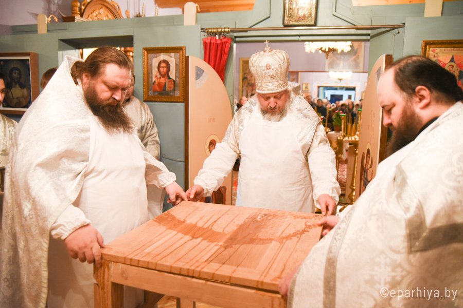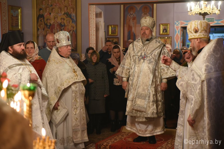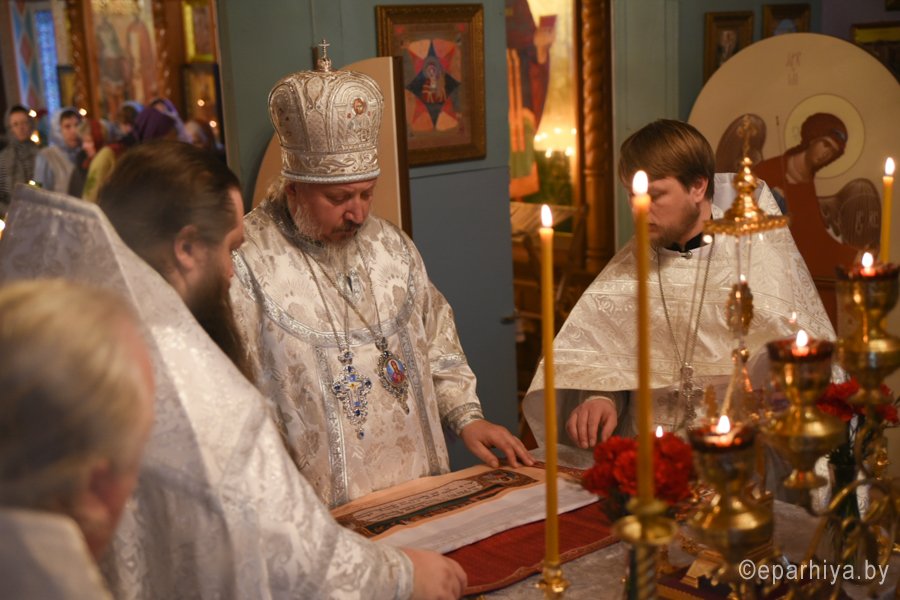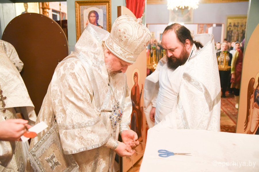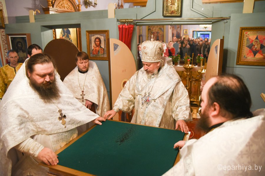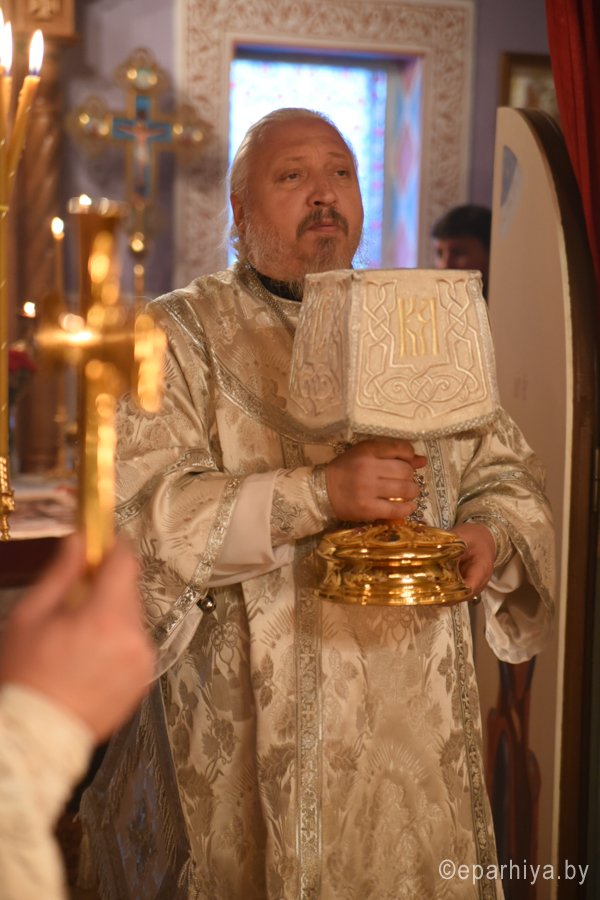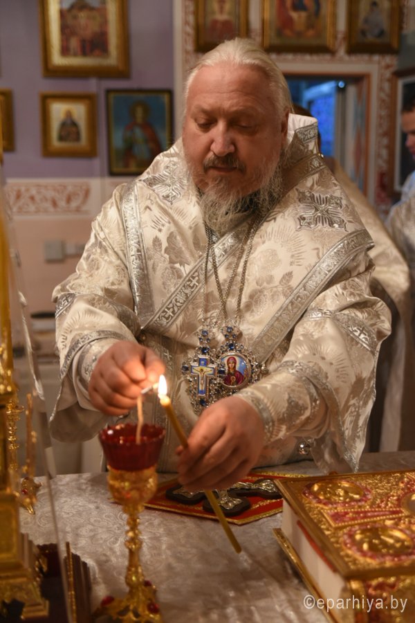 10 декабря 2018г. в день памяти преподобномученика Кронида Радонежского Высокопреосвященный Стефан совершил совершил чин освещения престола и храма в честь преподобномученика Кронида Радонежского прихода святого мученика Иоанна Воина г.Жлобина, а после совершил Божественную Литургию. Высокопреосвященному сослужили: секретарь Гомельской епархии протоиерей Георгий Алампиев, благочинный монастырей Гомельской епархии архимандрит Амвросий (Шевцов), благочинный Жлобинского округа протоиерей Василий Пилипенко, благочинный Рогачевского округа протоиерей Алексей Смотрицкий, настоятель прихода иеромонах Кронид (Печевистый) и духовенство округа. По окончании богослужения Владыка поздравил настоятеля прихода иеромонаха Кронида (Печевистого) с Днем Ангела и обратился к молящимся со словами Архипастырского назидания. |