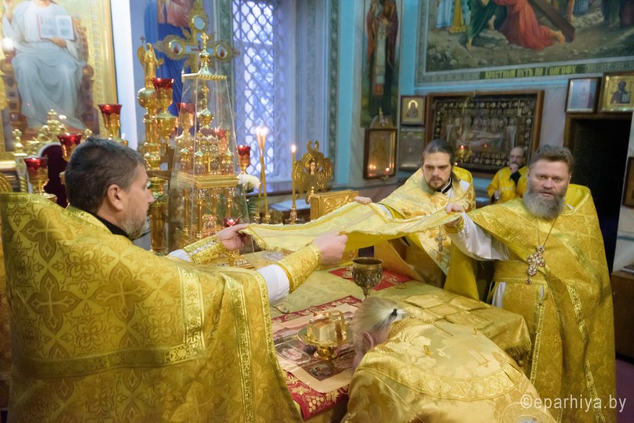 Божественную литургию в день памяти праведного Филарета Милостивого Высокопреосвященный Стефан в сослужении духовенства собора совершил в Петро-Павловском кафедральном соборе г.Гомеля. За богослужением Высокопреосвященным Стефаном было совершено молебное пение по случаю дня тезоименитства почетного Патриаршего Экзарха всея Беларуси митрополита Филарета. По окончании богослужения Владыка совершил чин освящения креста для часовни. |