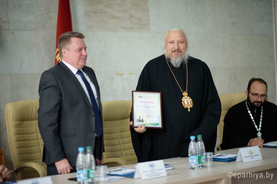 14 декабря в Белорусском государственном университете транспорта состоялся региональный научно-исторический семинар «Гомельщина. Вехи истории», который традиционно проводится совместно с отделом по взаимодействию с Вооруженными Силами и правоохранительными органами Гомельской епархии (председатель отдела – протоиерей Игорь Ольшанов) и университетом в рамках IV областных Покровских образовательных чтений. Сопредседателями семинара выступили архиепископ Гомельский и Жлобинский Стефан и ректор БелГУТа доктор физико-математических наук Кулаженко Юрий Иванович. В этом году семинар состоялся в помещении домовой церкви бывшей мужской гимназии ныне университета транспорта, что придало мероприятию особую значимость. Открывая семинар, ректор университета Кулаженко Ю.И., поблагодарил духовенство Гомельской епархии за вклад в духовное развитие студентов, а также отметил, что семинар вот уже который год способствует развитию общечеловеческих ценностей молодежи. «Мою душу тронуло то, что сегодня мы находимся и проводим наш семинар именно в этих стенах – храме святого благоверного князя Александра Невского – защитника Отечества – покровителя военнослужащих, именно военно-транспортный факультет университета вот уже который год выступает организатором семинара. Дай Бог, чтобы наши совместные труды в познании истины послужили просветительскому образованию молодого поколения» – отметил в приветственной речи Высокопреосвященный Стефан и преподнес в дар университету книги из серии «Духовное наследие Гомельщины». Особенная примечательность семинара состоит в том, что организаторы не ставят временные рамки в обсуждении фактов истории родного края – познание разных временных эпох Гомельщины, неизученных, а порою забытых, дает возможность молодому поколению переосмыслить уроки по-своему. На семинаре были представлены доклады: протоирея Георгия Алампиева и протоирея Александра Лопушанского «Добрушский приход в честь святителя Николая чудотворца» (Гомельская епархия); Грищенко И.А. «Православное военное духовенство в годы Первой мировой войны» (ГГГТУ им. П.О. Сухого»); Денисенко П.В. «Бои у деревни Красная долина Гомельского района в октябре 1943 года. Работа по восстановлению памяти военнослужащих, павших в этом районе» (Гомельское кадетское училище); Козороза И.Н. «Творчество Кирилла Туровского в контексте нравственного и патриотического воспитания восточных славян» (БелГУТ); Марданова А.В., Юрасюка Н.И. «Подготовка и проведение Гомельско-Речицкой наступательной операции» (БелГУТ) и др., которые войду в одноименный сборник докладов. В завершении мероприятия дипломами были отмечены лучшие доклады. За вклад в развитие духовно-нравственного воспитания молодого поколения грамотой Белорусского государственного университета транспорта был награжден архиепископ Гомельский и Жлобинский Стефан. |