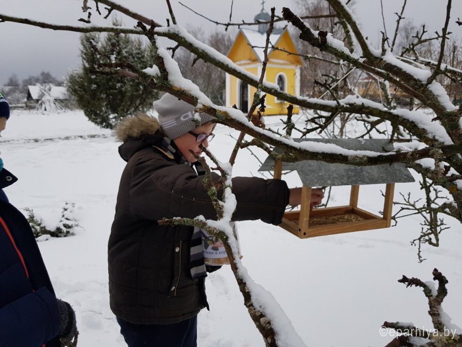 14 декабря 2018 года ученики 6-го класса ГУО "Гимназия г. Буда-Кошелево" посетили храм святителя Николая Чудотворца г.Буда-Кошелево, чтобы помочь пернатым друзьям пережить зиму. С собой ребята принесли кормушки и корм для птиц. Совместно с духовенством благочиния кормушки были размещены школьниками на деревьях прихрамовой территории. Перед началом акции священник Александр Веробей провел для ребят экскурсию по храму. Священнослужитель рассказал об устройстве храма, о значении молитвы в жизни человека. По окончании мероприятия благочинный Буда-Кошелевского округа, протоиерей Сергий Пешко раздал в благодарность всем пришедшим на помощь иконки и сладкие угощения. |