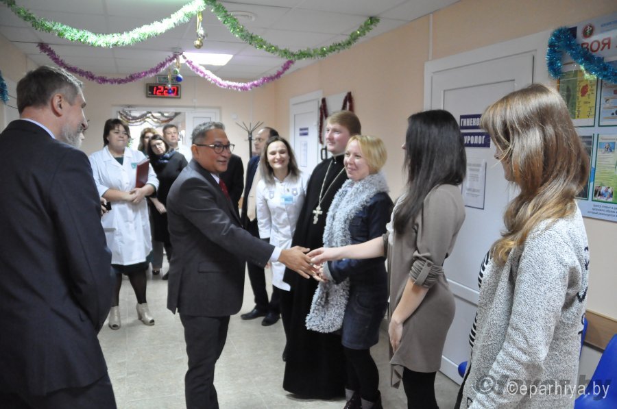 11 декабря 2018г. клирик храма Преображения Господня г.Гомеля иерей Вадим Грицков совместно с волонтерами молодежной группы "Фаворовцы" посетил центр "Подросток" в Детской Городской Центральной поликлинике г.Гомеля. Мероприятие проходило в рамках плана сотрудничества Министерства образования Беларусь и представительства Детского фонда ООН (ЮНИСЕФ) в Беларуси при участии представителя Детского фонда ООН в Республике Беларусь Рашеда Мустафы Сарвара, Чрезвычайного и Полномочного Посла Республики Польша в Беларуси Артура Михальского, представителей Министерства образования и руководства Гомельской области. В ходе встречи священнослужитель рассказал о взаимодействии храма Преображения Господня в г.Гомеле с центром "Подросток". |