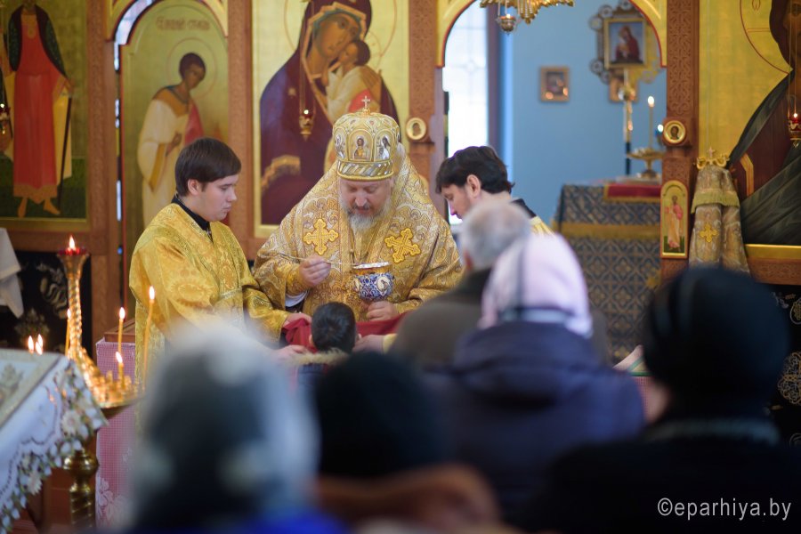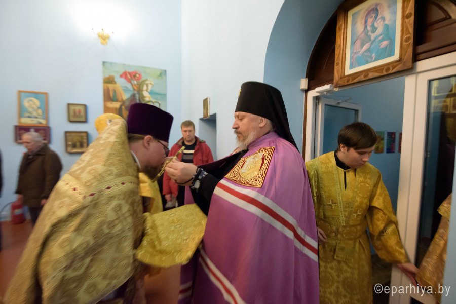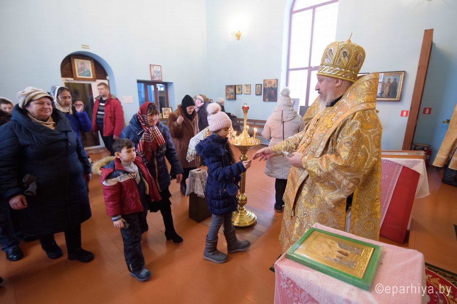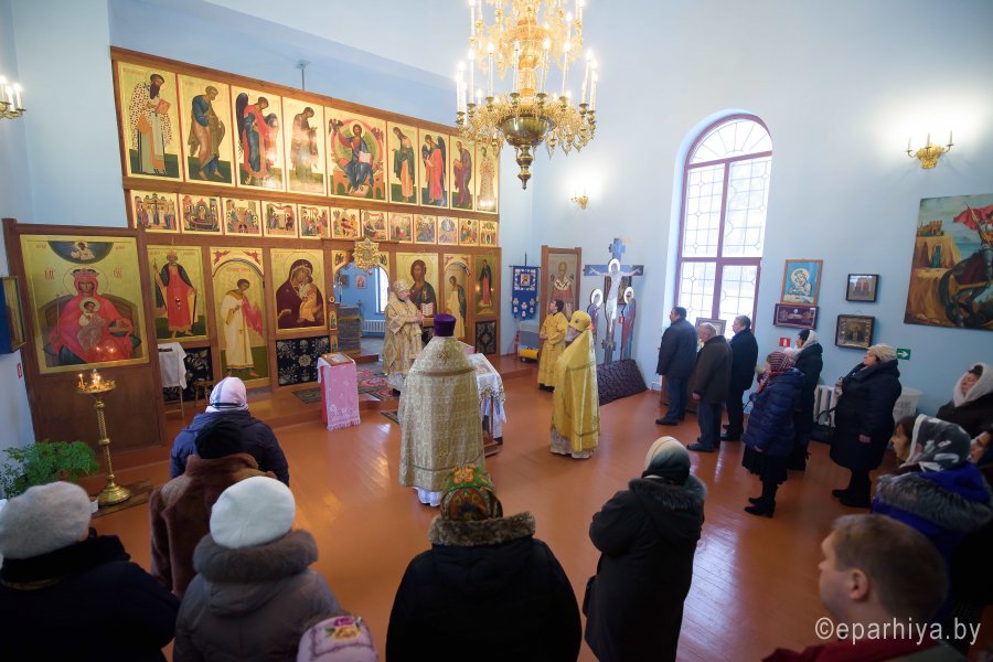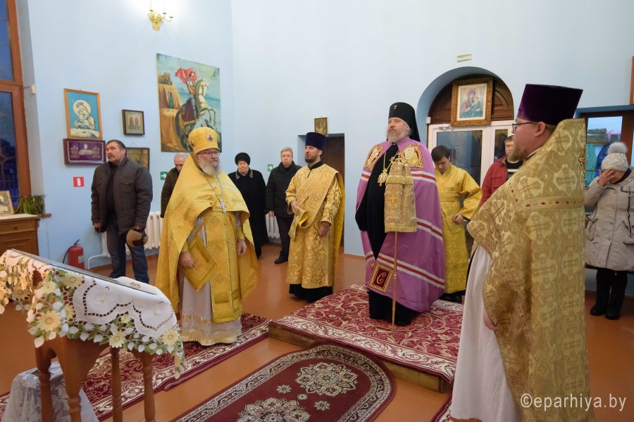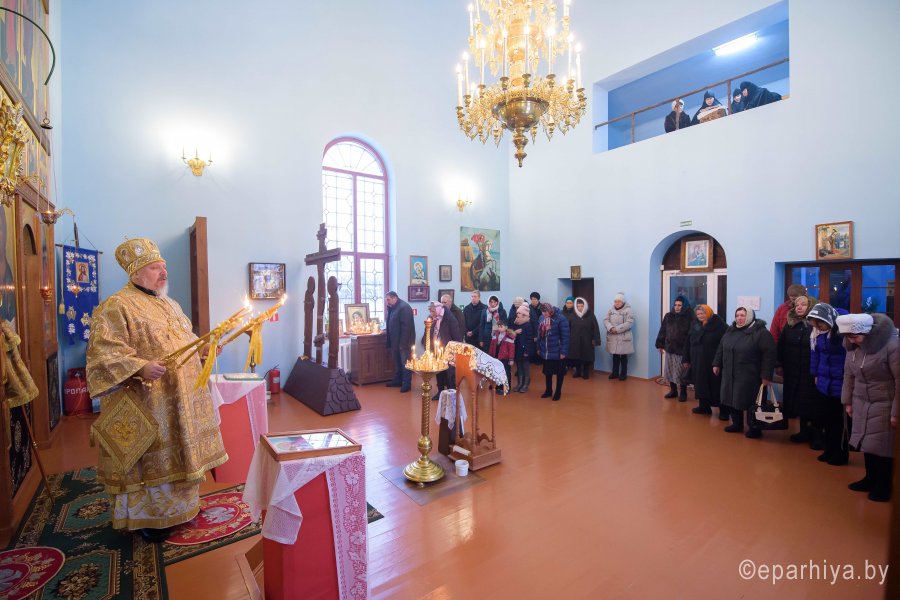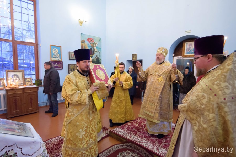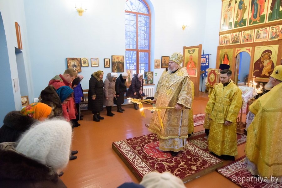 Божественную литургию в день памяти прп. Саввы Сторожевского, Неделю 29-ю по Пятидесятнице 16 декабря 2018г. Высокопреосвященный Стефан совершил в храме иконы Божией Матери "Почаевская" д. Борщевка. Высокопреосвященному сослужили: благочинный Речицкого округа протоиерей Алексей Пешко и настоятель храма Алексей Мороз. По окончании богослужения Владыка поздравил причастников с принятием Святых Христовых Таин и обратился к молящимся со словами Архипастырского назидания. |
