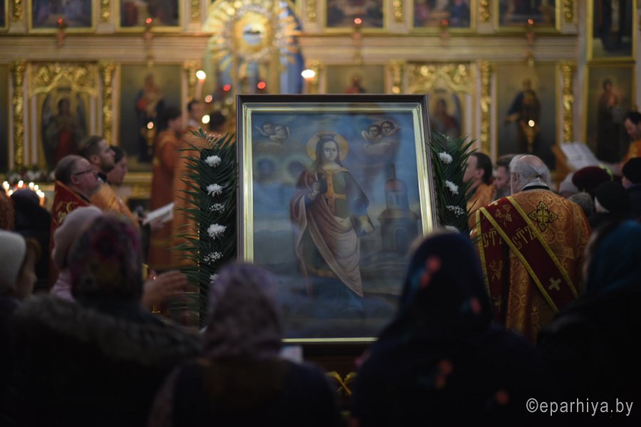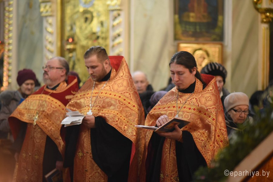 Вечернее богослужение с чтением акафиста нараспев, в канун дня памяти великомученицы Варвары, 16 декабря 2018г. Высокопреосвященнейший Стефан архиепископ Гомельский и Жлобинский совершил в соборе святых апостолов Петра и Павла г. Гомеля в сослужении духовенства собора. Со словами проповеди к молящимся обратился клирик храма иконы Божией Матери "Скоропослушница" в г.Гомеле иерей Александр Пранкевич. По окончании богослужения Владыка обратился к присутствующим со словами Архипастырского назидания. |